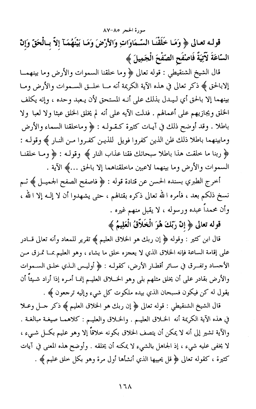 قوله تعالى (وَمَا خَلَقْنَا السَّمَاوَاتِ وَالْأَرْضَ وَمَا بَيْنَهُمَا إِلَّا بِالْحَقِّ وَإِنَّ السَّاعَةَ لَآَتِيَةٌ فَاصْفَحِ الصَّفْحَ الْجَمِيلَ)