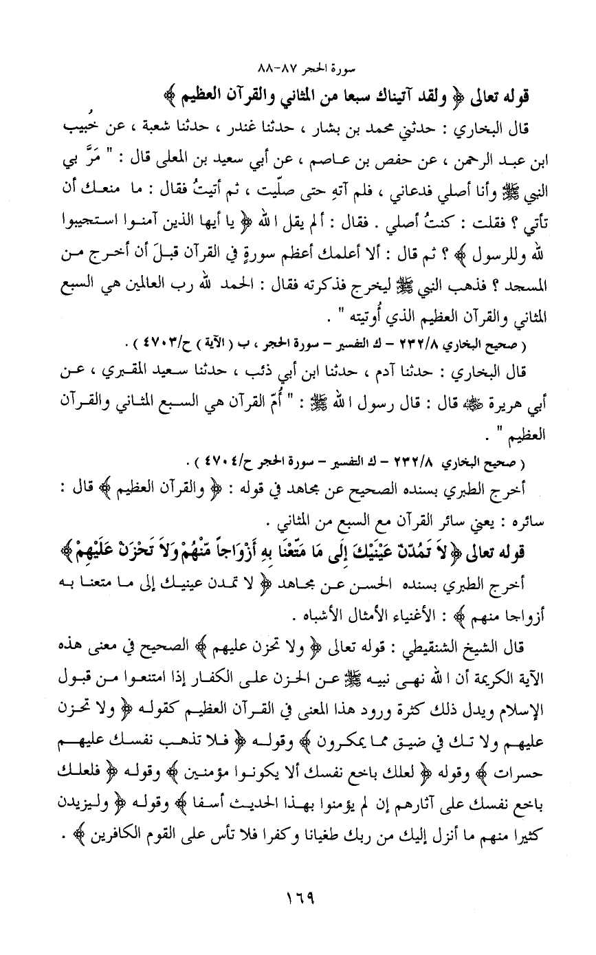قوله تعالى (ولقد آتيناك سبعا من المثاني والقرآن العظيم)