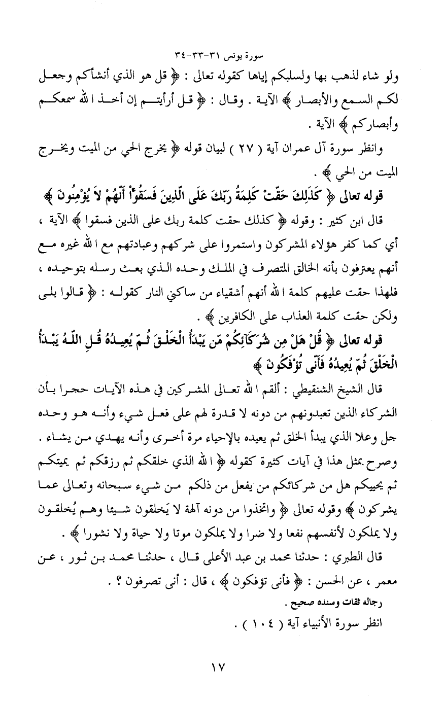 قوله تعالى (قُلْ هَلْ مِنْ شُرَكَائِكُمْ مَنْ يَبْدَأُ الْخَلْقَ ثُمَّ يُعِيدُهُ قُلِ اللَّهُ يَبْدَأُ الْخَلْقَ ثُمَّ يُعِيدُهُ فَأَنَّى تُؤْفَكُونَ)