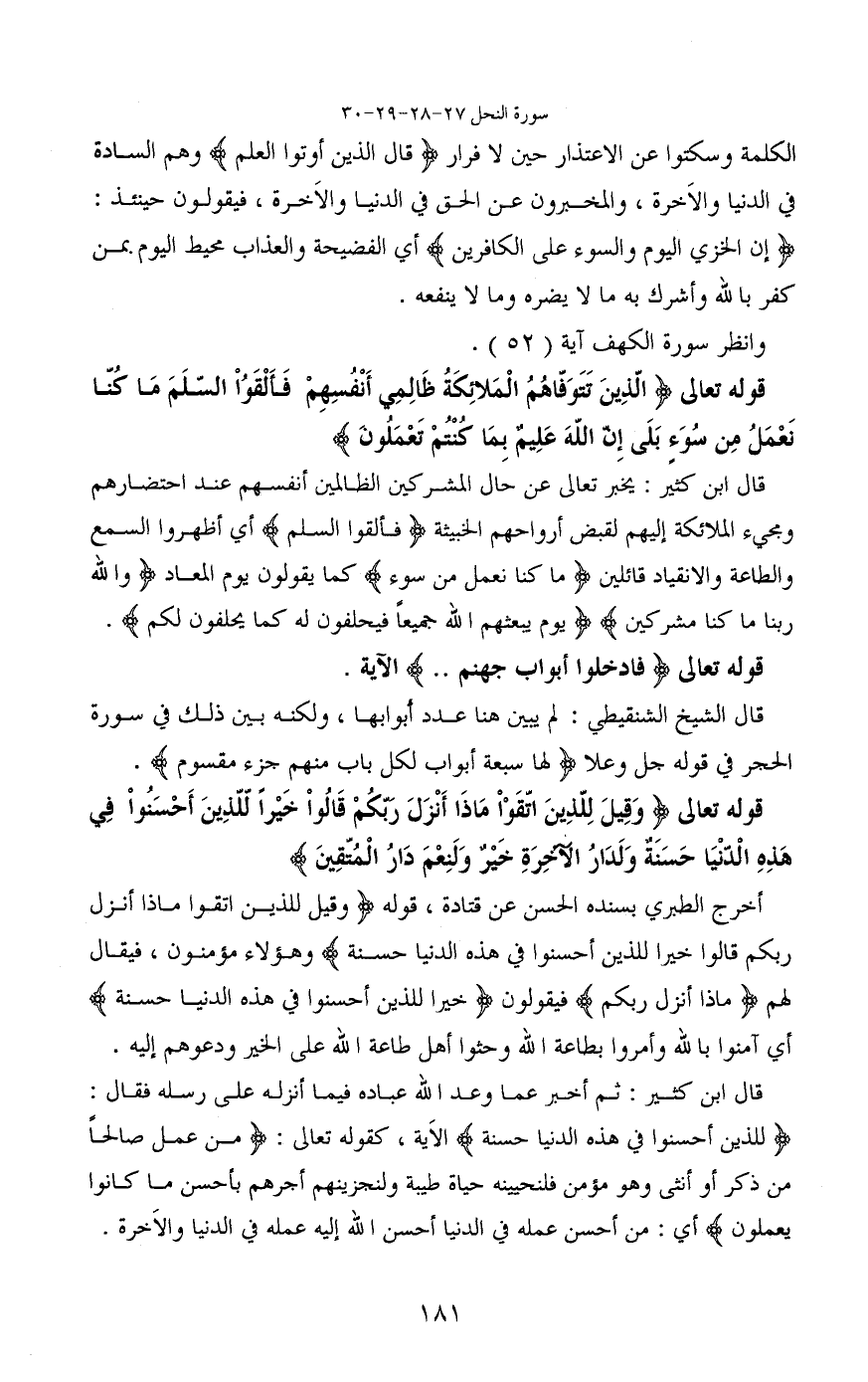 قوله تعالى (وَقِيلَ لِلَّذِينَ اتَّقَوْا مَاذَا أَنْزَلَ رَبُّكُمْ قَالُوا خَيْرًا لِلَّذِينَ أَحْسَنُوا فِي هَذِهِ الدُّنْيَا حَسَنَةٌ وَلَدَارُ الْآخِرَةِ خَيْرٌ وَلَنِعْمَ دَارُ الْمُتَّقِينَ)
