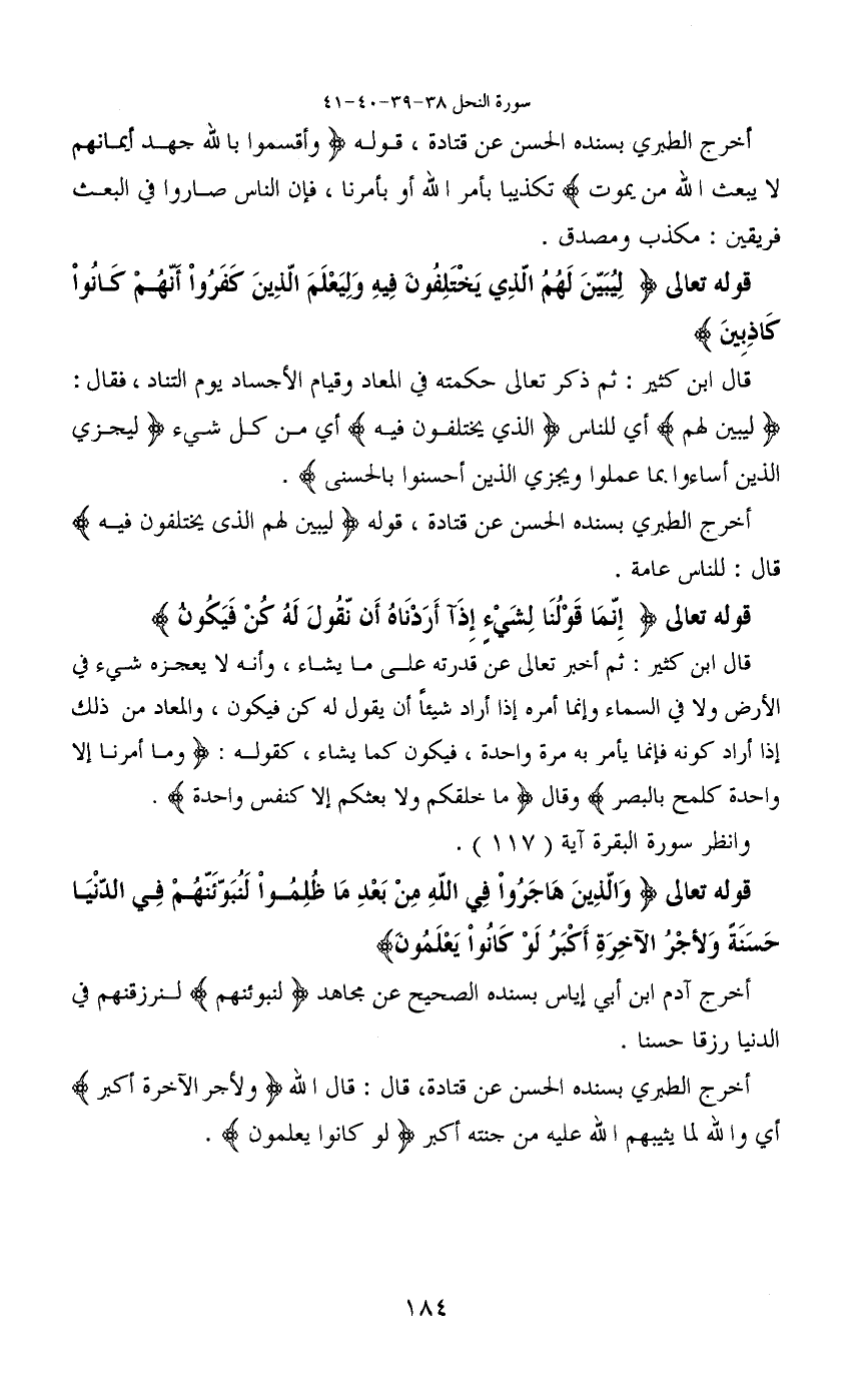 أخرج الطبري بسنده الحسن عن قتادة، قوله (وأقسموا بالله جهد أيمانهم لا يبعث الله من يموت) تكذيبا بأمر الله أو بأمرنا، فإن الناس صاروا في البعث فريقين: مكذب ومصدق.