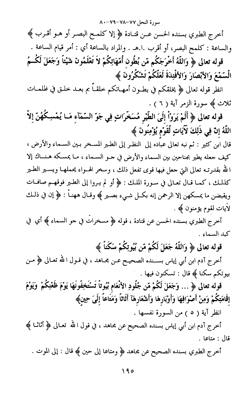 قوله تعالى (أَلَمْ يَرَوْا إِلَى الطَّيْرِ مُسَخَّرَاتٍ فِي جَوِّ السَّمَاءِ مَا يُمْسِكُهُنَّ إِلَّا اللَّهُ إِنَّ فِي ذَلِكَ لَآيَاتٍ لِقَوْمٍ يُؤْمِنُونَ)
