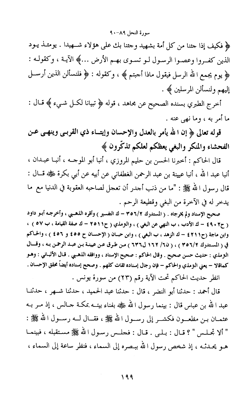 قوله تعالى (إن الله يأمر بالعدل والإحسان وإيتاء ذي القربى وينهى عن الفحشاء والمنكر والبغي يعظكم لعلكم تذكّرون)