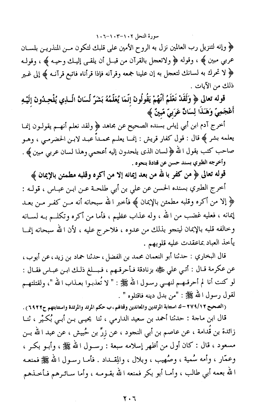 قوله تعالى (من كفر بالله من بعد إيمانه إلا من أكره وقلبه مطمئن بالإيمان)