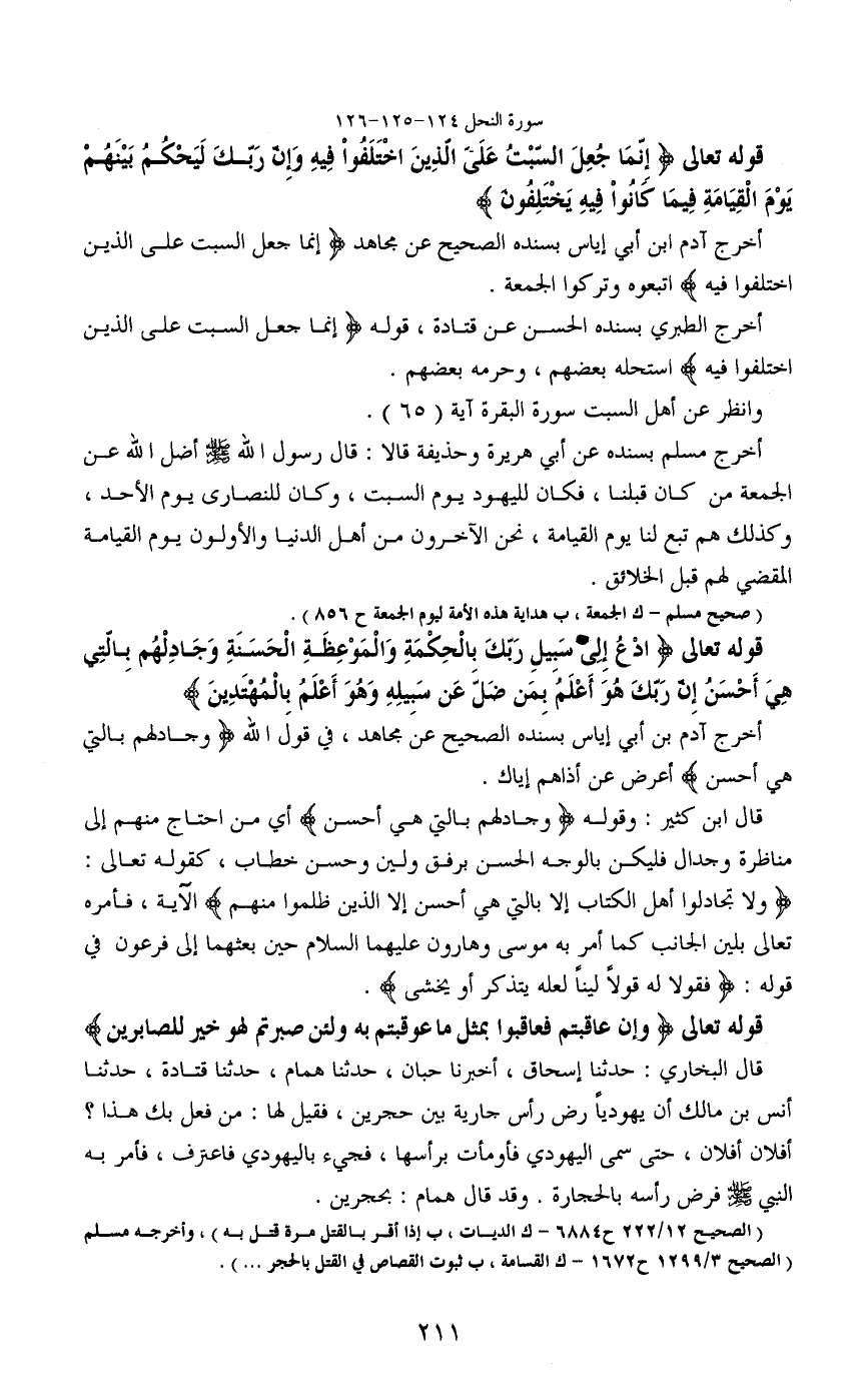 قوله تعالى (ادْعُ إِلَى سَبِيلِ رَبِّكَ بِالْحِكْمَةِ وَالْمَوْعِظَةِ الْحَسَنَةِ وَجَادِلْهُمْ بِالَّتِي هِيَ أَحْسَنُ إِنَّ رَبَّكَ هُوَ أَعْلَمُ بِمَنْ ضَلَّ عَنْ سَبِيلِهِ وَهُوَ أَعْلَمُ بِالْمُهْتَدِينَ)