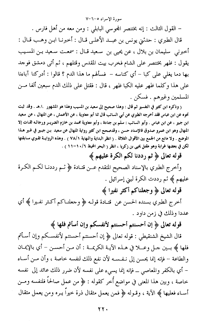 وأخرج الطبري بالإسناد الصحيح المتقدم عن قتادة (ثم رددنا لكم الكرة عليهم) ثم رددت الكرة لبني إسرائيل.