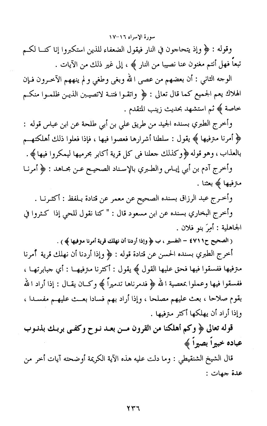 (الصحيح ح 4711- التفسير، ب (وإذا أردنا أن نهلك قرية أمرنا مترفيها)) .
