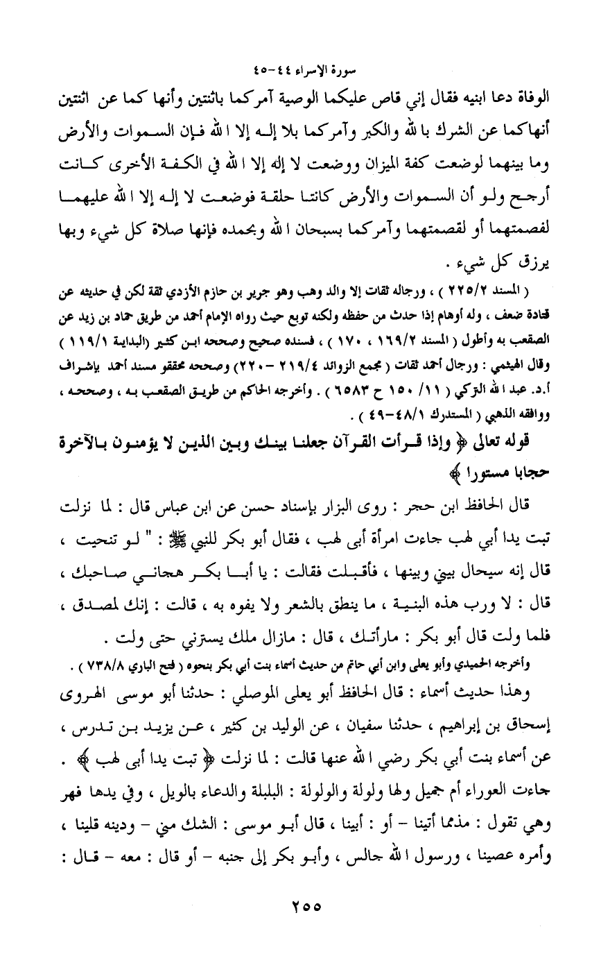قوله تعالى (وَإِذَا قَرَأْتَ الْقُرْآَنَ جَعَلْنَا بَيْنَكَ وَبَيْنَ الَّذِينَ لَا يُؤْمِنُونَ بِالْآَخِرَةِ حِجَابًا مَسْتُورًا)