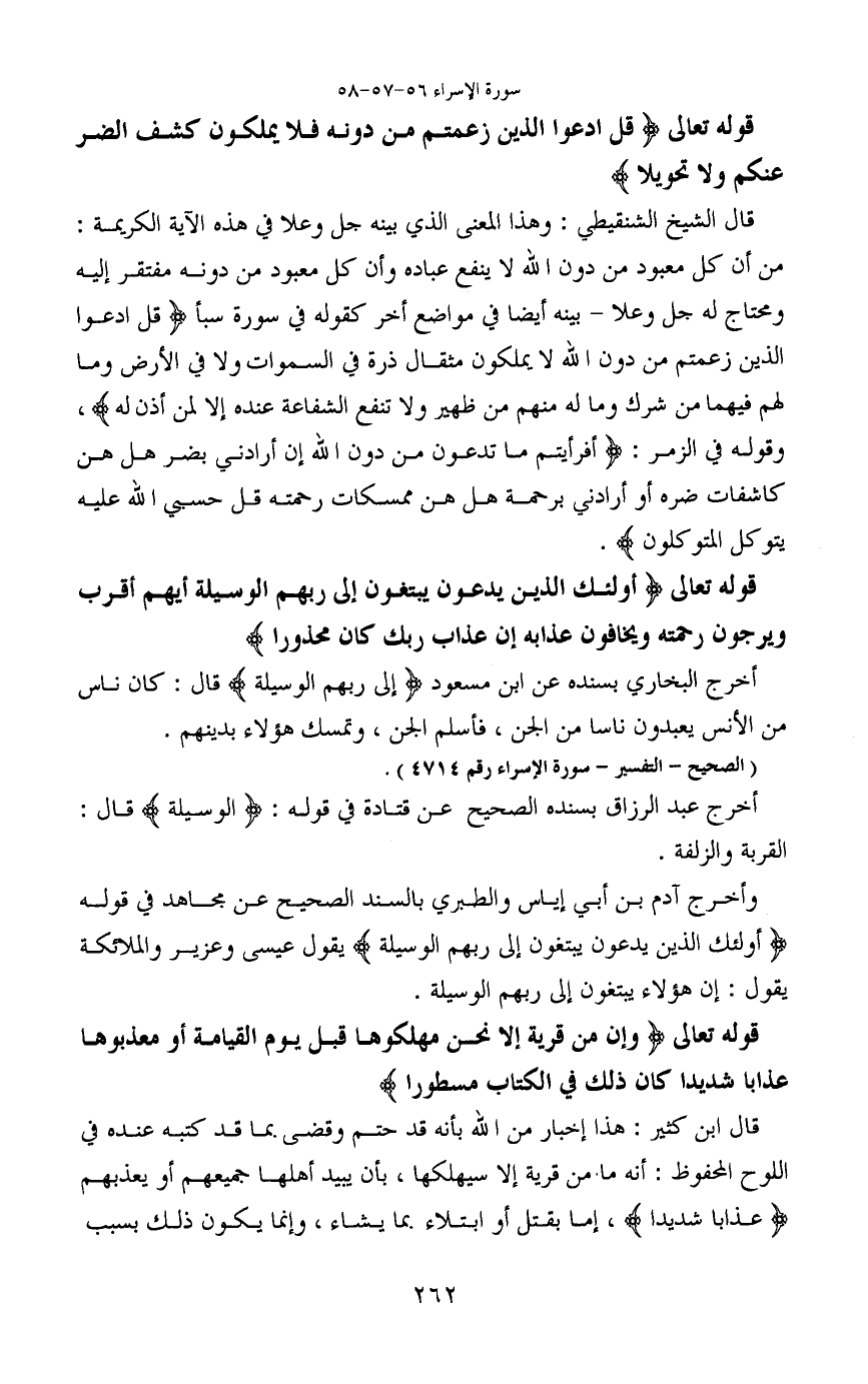 قوله تعالى (أولئك الذين يدعون يبتغون إلى ربهم الوسيلة أيهم أقرب ويرجون رحمته ويخافون عذابه إن عذاب ربك كان محذورا)