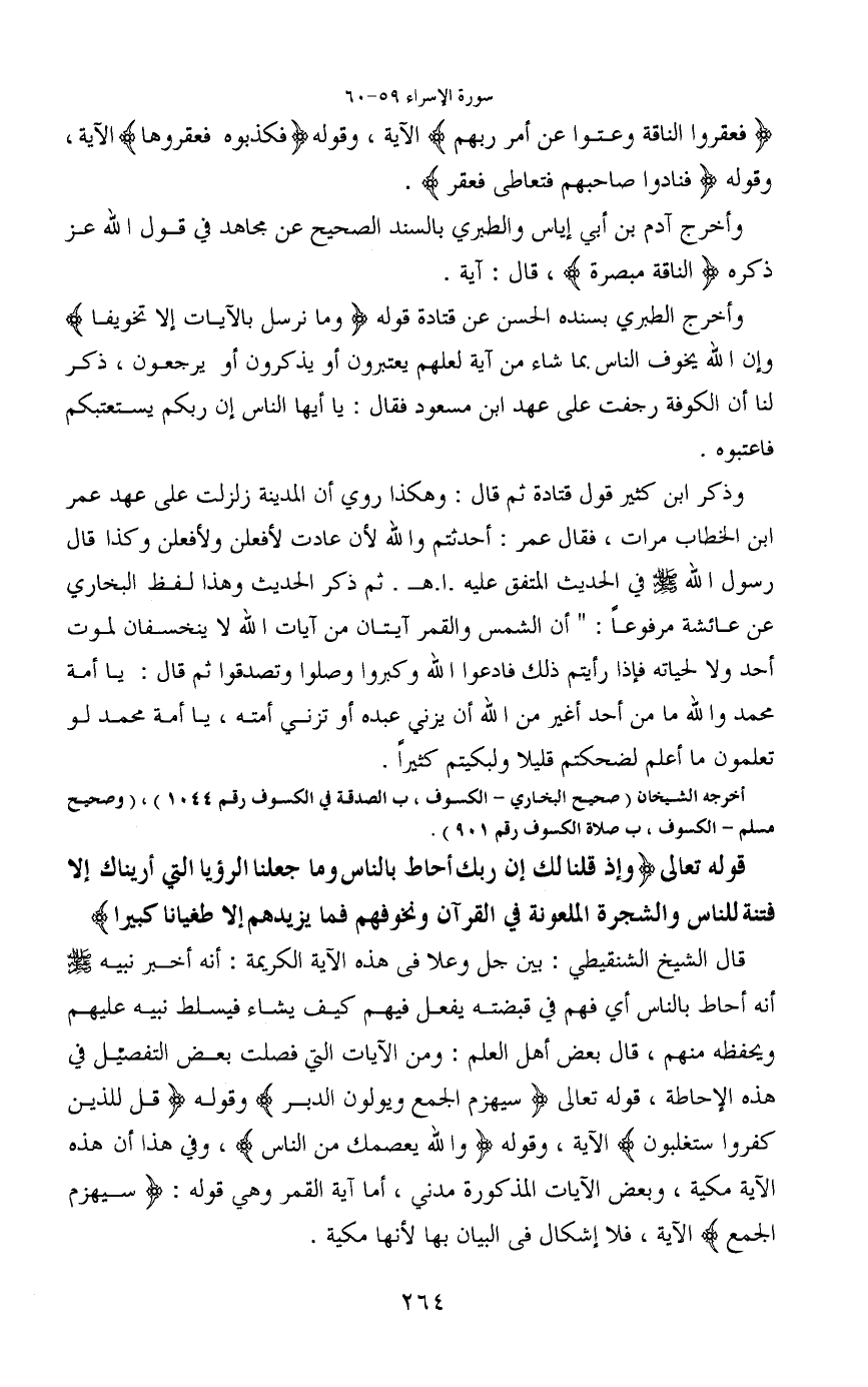 وأخرج الطبري بسنده الحسن عن قتادة قوله (وما نرسل بالآيات إلا تخويفا) وإن الله يخوف الناس بما شاء من آية لعلهم يعتبرون أو يذكرون أو يرجعون، ذكر لنا أن الكوفة رجفت على عهد ابن مسعود فقال: يا أيها الناس إن ربكم يستعتبكم فاعتبوه.