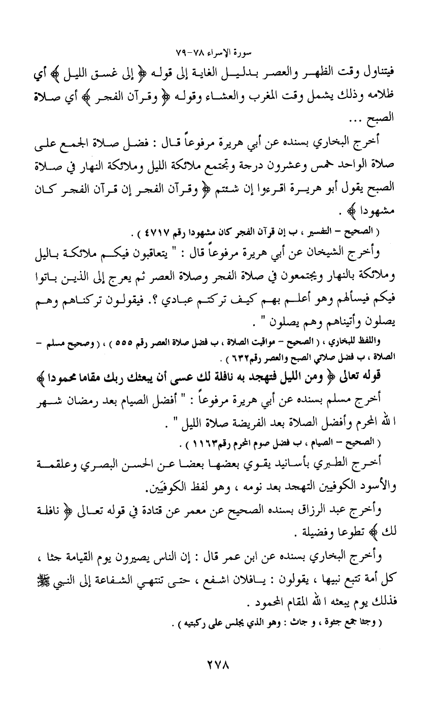 (الصحيح- التفسير، ب إن قرآن الفجر كان مشهودا رقم 4717) .