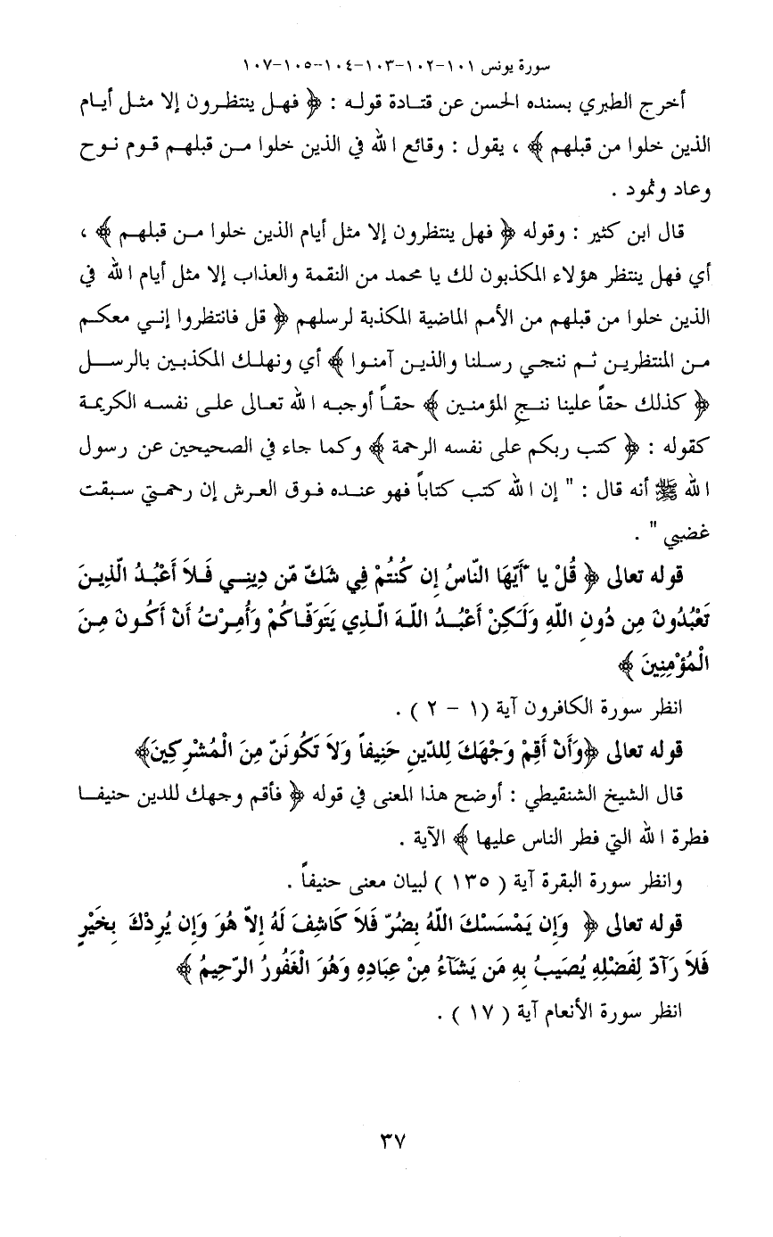 قوله تعالى (وَأَنْ أَقِمْ وَجْهَكَ لِلدِّينِ حَنِيفًا وَلَا تَكُونَنَّ مِنَ الْمُشْرِكِينَ)