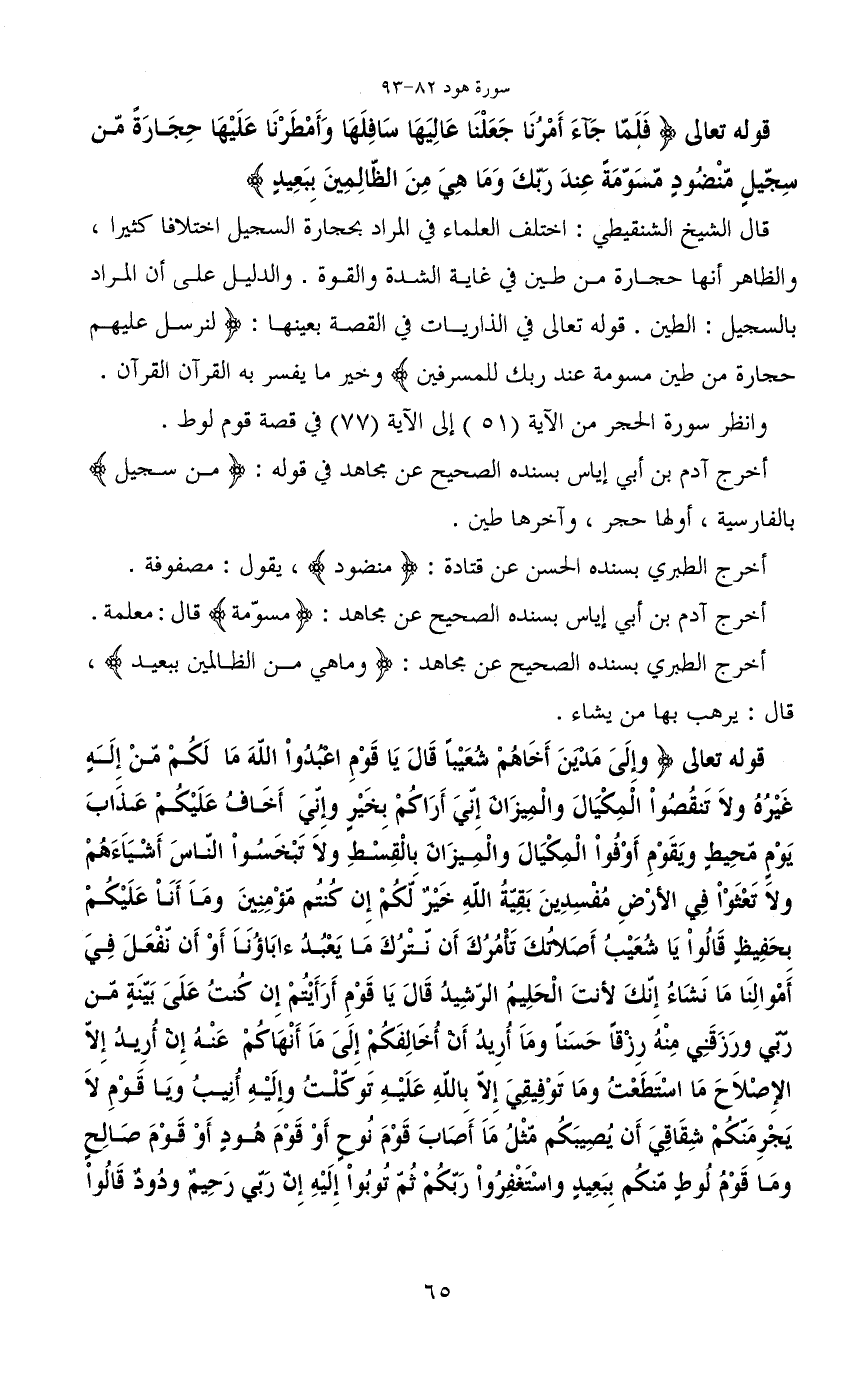 قوله تعالى (فَلَمَّا جَاءَ أَمْرُنَا جَعَلْنَا عَالِيَهَا سَافِلَهَا وَأَمْطَرْنَا عَلَيْهَا حِجَارَةً مِنْ سِجِّيلٍ مَنْضُودٍ (82) مُسَوَّمَةً عِنْدَ رَبِّكَ وَمَا هِيَ مِنَ الظَّالِمِينَ بِبَعِيدٍ)
