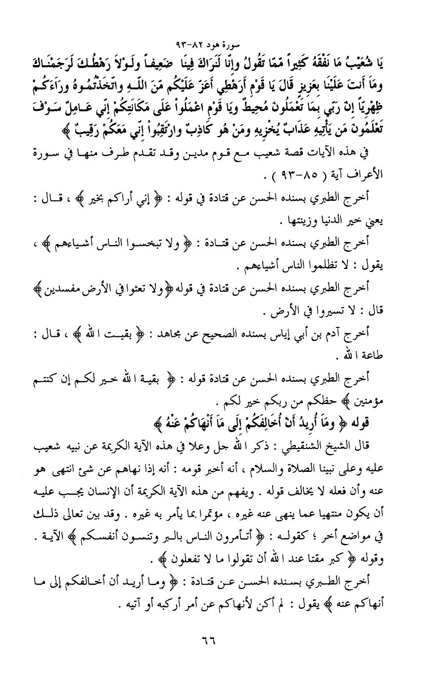 أخرج الطبري بسنده الحسن عن قتادة: (وما أريد أن أخالفكم إلى ما أنهاكم عنه) يقول: لم أكن لأنهاكم عن أمر أركبه أو آتيه.