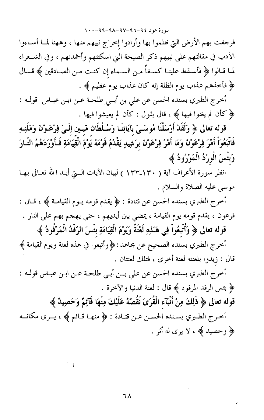 قوله تعالى (وَلَقَدْ أَرْسَلْنَا مُوسَى بِآيَاتِنَا وَسُلْطَانٍ مُبِينٍ (96) إِلَى فِرْعَوْنَ وَمَلَئِهِ فَاتَّبَعُوا أَمْرَ فِرْعَوْنَ وَمَا أَمْرُ فِرْعَوْنَ بِرَشِيدٍ (97) يَقْدُمُ قَوْمَهُ يَوْمَ الْقِيَامَةِ فَأَوْرَدَهُمُ النَّارَ وَبِئْسَ الْوِرْدُ الْمَوْرُودُ)