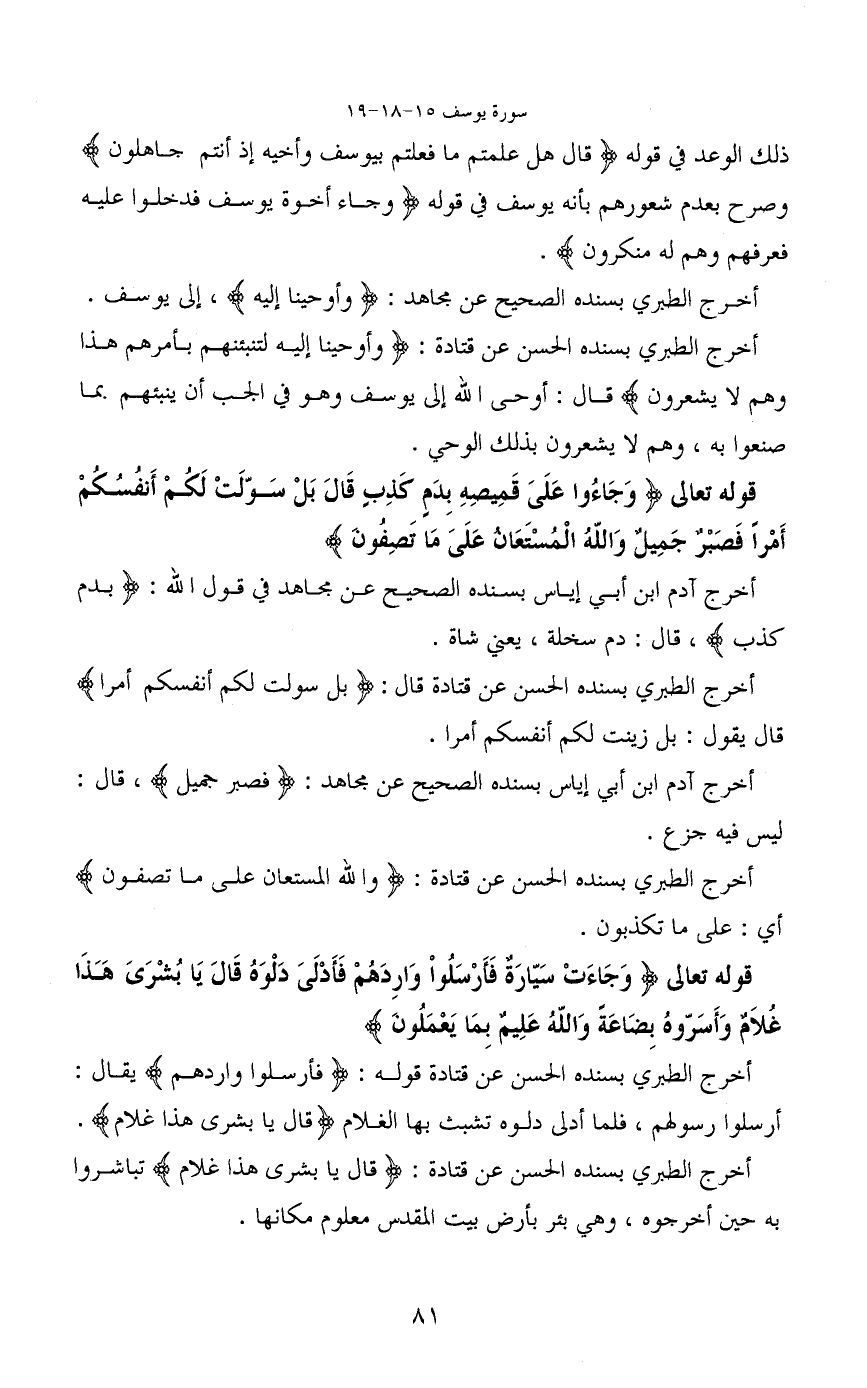 أخرج آدم ابن أبي إياس بسنده الصحيح عن مجاهد: (فصبر جميل) ، قال: ليس فيه جزع.
