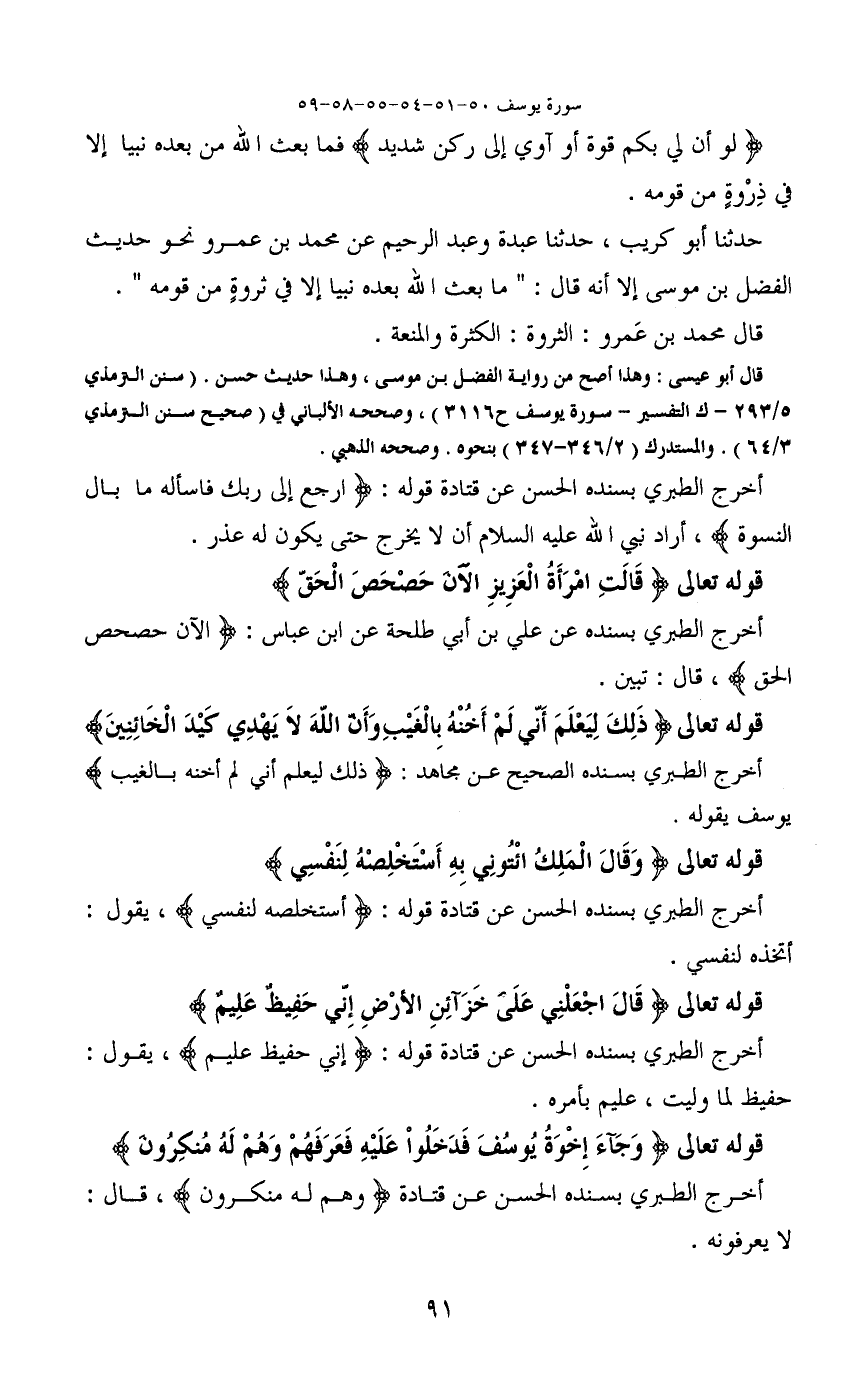 قال أبو عيسى: وهذا أصح من رواية الفضل بن موسى، وهذا حديث حسن. (سنن الترمذي 5/293- ك التفسير- سورة يوسف ح 3116) ، وصححه الألباني في (صحيح سنن الترمذي 3/64) . والمستدرك (2/346-347) بنحوه. وصححه الذهبي.
