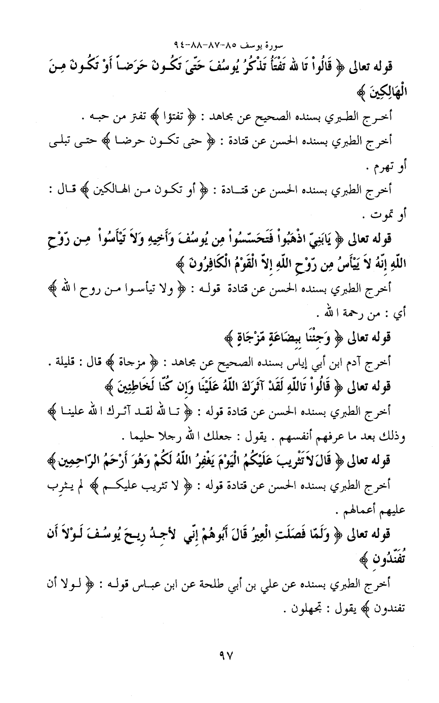 قوله تعالى (يَا بَنِيَّ اذْهَبُوا فَتَحَسَّسُوا مِنْ يُوسُفَ وَأَخِيهِ وَلَا تَيْأَسُوا مِنْ رَوْحِ اللَّهِ إِنَّهُ لَا يَيْأَسُ مِنْ رَوْحِ اللَّهِ إِلَّا الْقَوْمُ الْكَافِرُونَ)