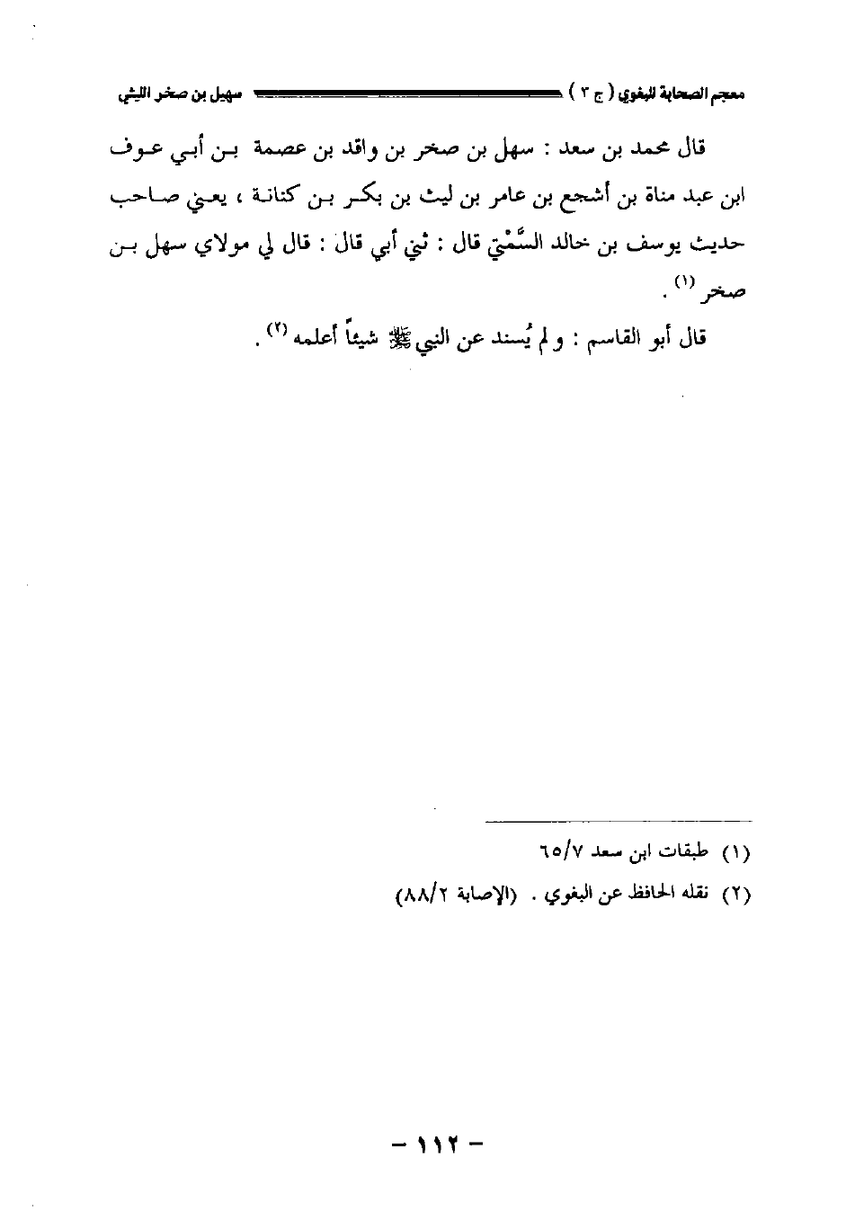 قال محمد بن سعد: سهل بن صخر بن واقد بن عصمة بن أبي عوف بن عبد مناة بن أشجع بن عامر بن ليث بن بكر بن كنانة يعني صاحب حديث يوسف بن خالد السمتي قال: حدثني أبي قال: قال لي مولاي سهل بن صخر.