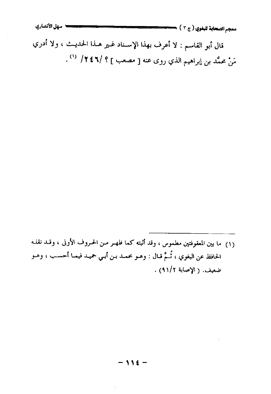 قال أبو القاسم: لا أعرف بهذا الإسناد غير هذا الحديث ولا أدري من محمد بن إبراهيم الذي روى عنه [مصعب].//٢٤٦//