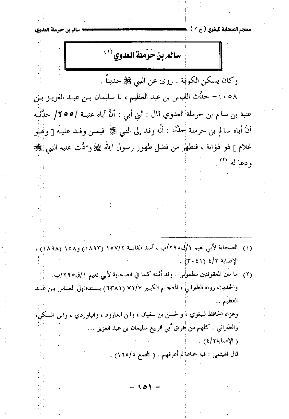 ١٠٥٨ - حدث العباس بن عبد العظيم، حدثنا سليمان بن عبد العزيز بن عتبة بن سالم بن حرملة العدوي قال: حدثني أبي: أنا أباه عتبة//٢٥٥// حدثه ان أباه سالم بن حرملة حدثه: أنه وفد إلى النبي صلى الله عليه وسلم فيمن وفد عليه [وهو غلام] ذو ذؤابة فتطهر من فضل طهور رسول الله صلى الله عليه وسلم وسمت عليه النبي صلى الله عليه وسلم ودعا له.