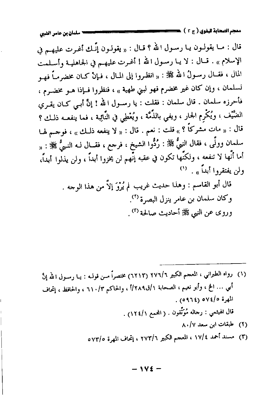 قال: ما يقولون يارسول الله؟ قال: " يقولون إنك أغرت عليهم في الإسلام ". قال: لا يارسول الله! أغرت عليهم في الجاهلية وأسلمت المال فقال رسول الله صلى الله عليه وسلم: " انظروا إلى المال فإن كان مخضرما فهو لسلمان وإن كان غير مخضرم فهو لبني طهية " فنظروا فإذا هو مخضرم فأحرزه سلمان. قال سلمان: فقلت: يارسول الله! إن أبي كان يقري الضيف ويكرم الجار ويفي بالذمة ويعطي في النائبة فما ينفعه ذلك؟ قال: " مات مشركا؟ " قلت: نعم. قال: " لا ينفعه ذلك " فوجم لها سلمان وولى فقال النبي صلى الله عليه وسلم: ردوا الشيخ فرجع فقال له النبي صلى الله عليه وسلم: " أما أنها لا تنفعه ولكنها تكون في عقبه إنهم لن يخزوا أبدا ولن يذلوا أبدا ولن يفتقروا أبدا.