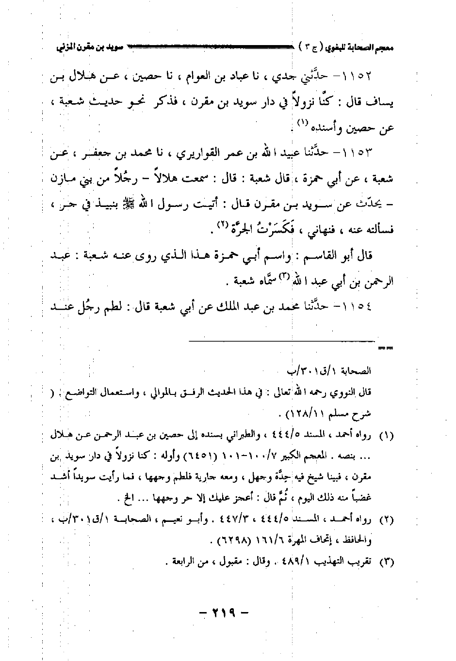 ١١٥٢ - حدثني جدي نا عباد بن العوام نا حصين عن هلال بن يساف قال: كنا نزولا في دار سويد بن مقرن فذكر نحو حديث شعبة عن حصين وأسنده.