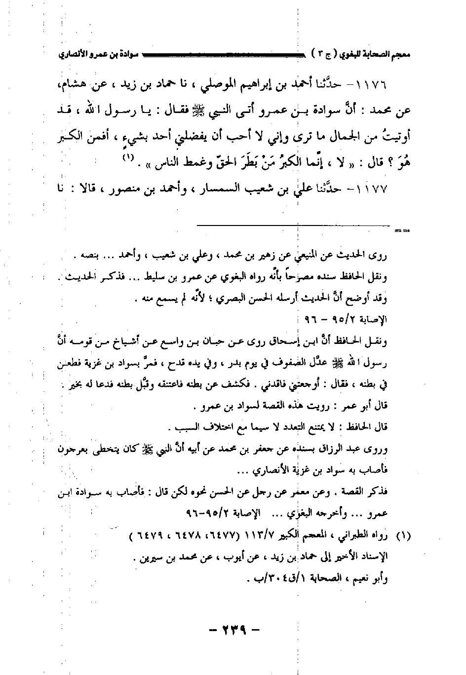 ١١٧٦ - حدثنا أحمد بن إبراهيم الموصلي نا حماد بن زيد عن هشام عن محمد: أن سوادة بن عمرو أتى النبي صلى الله عليه وسلم فقال: يارسول الله قد أوتيت من الجمال ما ترى وإني لا أحب أن يفضلني أحد بشيء أفمن الكبر هو؟ قال: " لا إنما الكبر من بطر الحق وغمط الناس ".