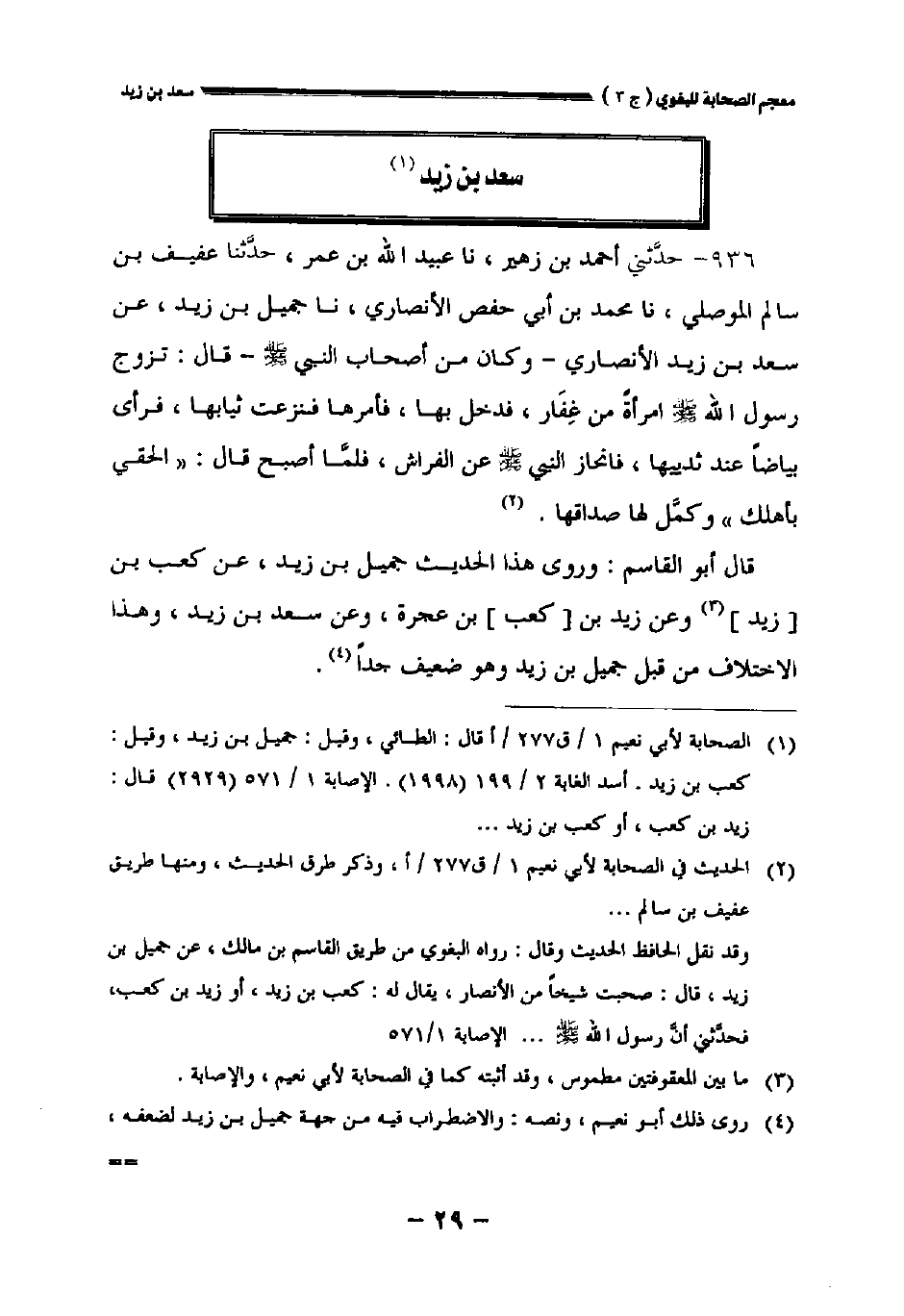 قال أبو القاسم: وروى هذا الحديث جميل بن زيد عن كعب بن [زيد] وعن زيد بن [كعب] بن عجرة وعن سعيد بن زيد وهذا الاختلاف من قبل جميل بن زيد وهو ضعيف جدا.