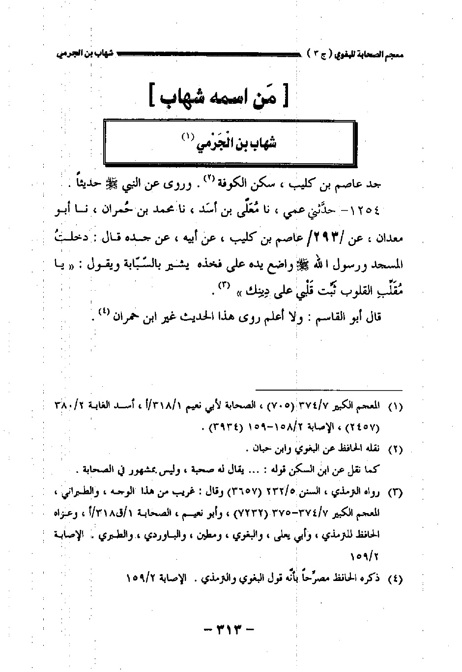 ١٢٥٤ - حدثني عمي نا معلى بن أسد نا محمد بن حمران نا أبو معدان عن //٢٩٣// عاصم بن كليب عن أبيه عن جده قال: دخلت المسجد ورسول الله صلى الله عليه وسلم واضع يده على فخذه يشير بالسبابة ويقول: " يا مقلب القلوب ثبت قلبي على دينك.