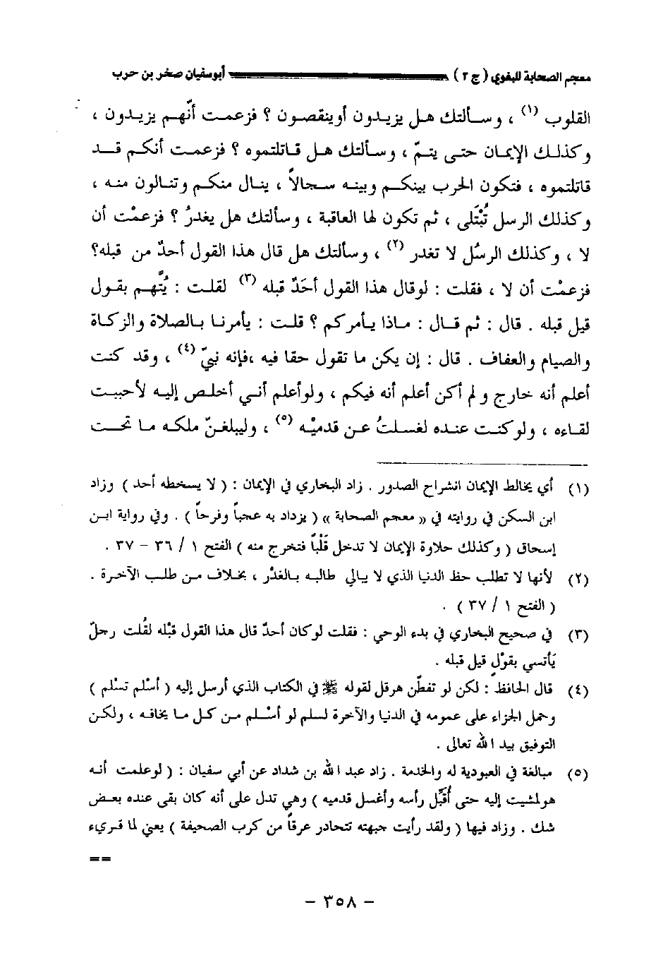 القلوب، وسألتك: هل يزيدون أم ينقصون؟ فزعمت أنهم يزيدون، وكذلك الإيمان حتى يتم، وسألتك هل قاتلتموه؟ فزعمت أنكم قاتلتموه، فتكون الحرب بينكم وبينه سجالا،.