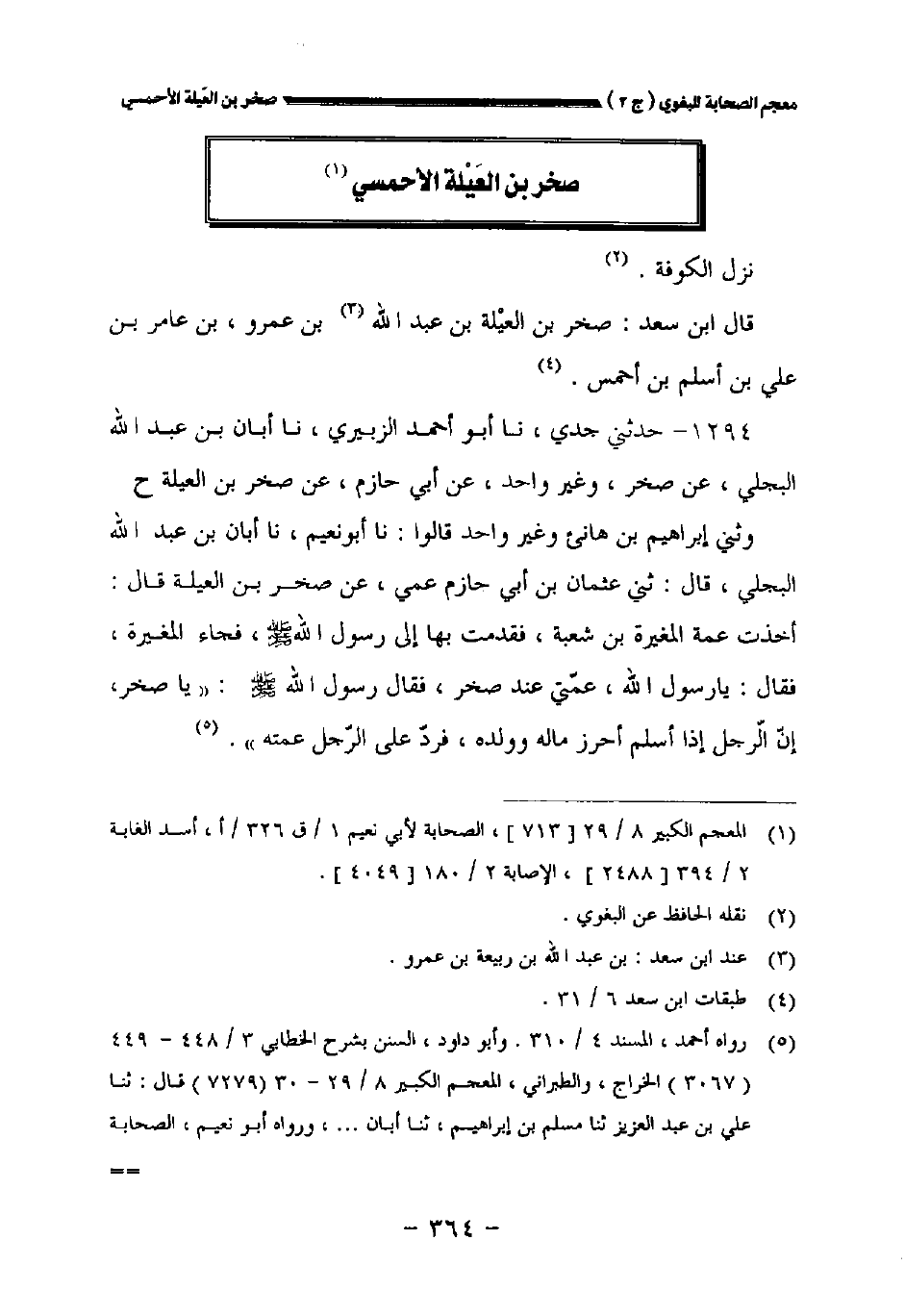 ١٢٩٤ - حدثني جدي نا أبو أحمد الزبيري نا أبان بن عبد الله البجلي عن صخر وغير واحد عن أبي حازم عن صخر بن العيلة ح