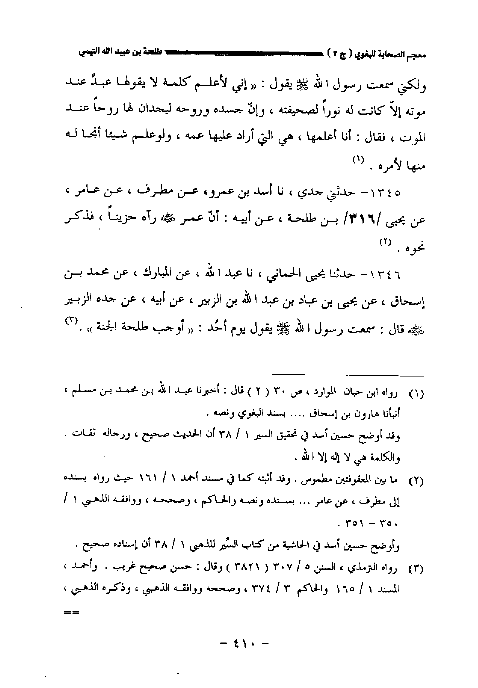 ١٣٤٥ - حدثني جدي نا أسد بن عمرو عن مطرف عن عامر عن يحيى //٣١٦//بن طلحة عن أبيه: أن عمر رضي الله عنه رآه حزينا فذكر نحوه.