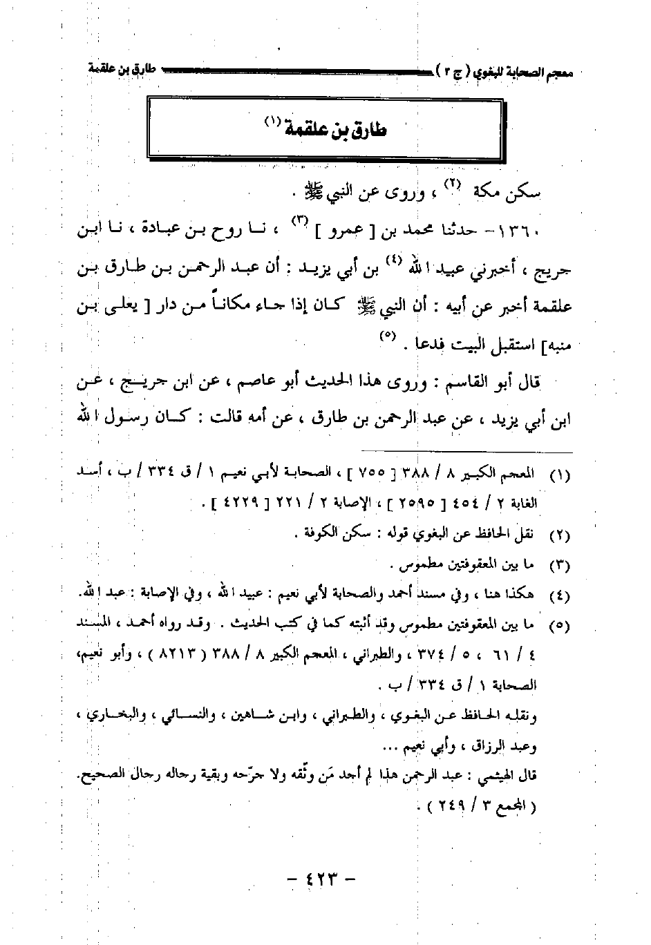 قال أبو القاسم: وروى هذا الحديث أبو عاصم عن ابن جريج عن ابن أبي يزيد عن عبد الرحمن بن طارق عن أمه قالت: كان رسول الله
