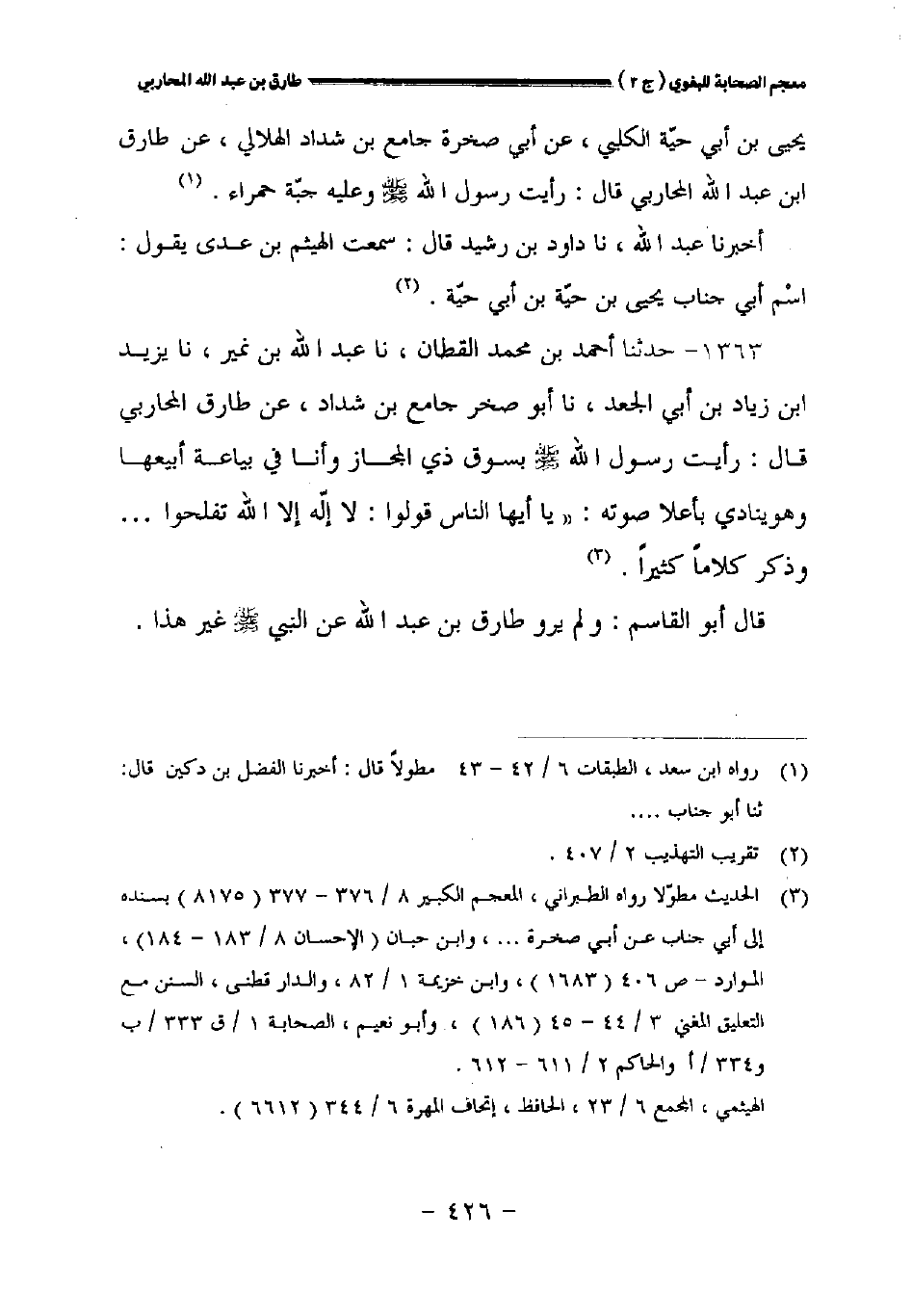 قال أبو القاسم: ولم يرو طارق بن عبد الله عن النبي صلى الله عليه وسلم غير هذا.