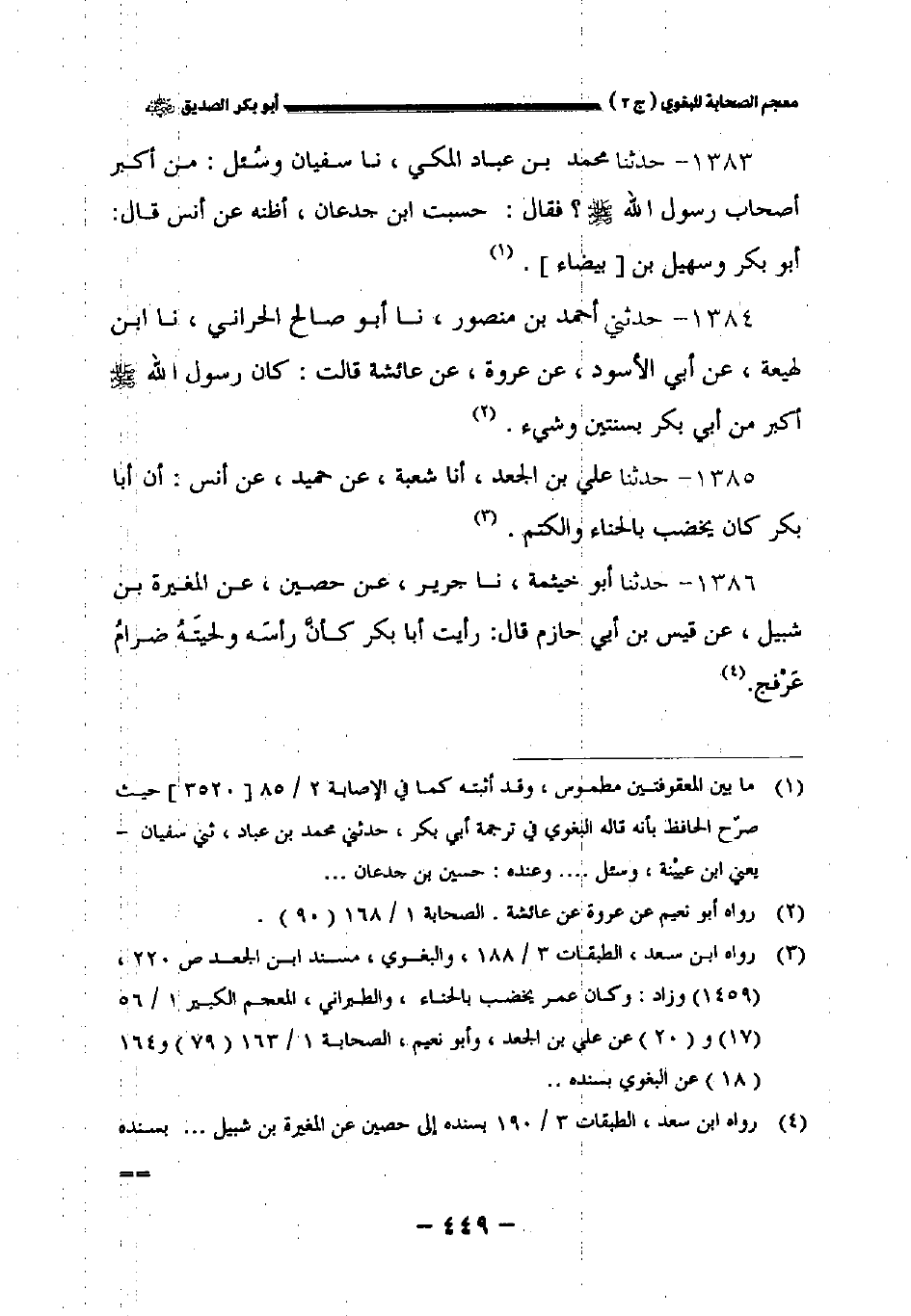 ١٣٨٥ - حدثنا علي بن الجعد أخبرنا شعبة عن حميد عن أنس: أن أبا بكر كان يخضب بالحناء والكتم.