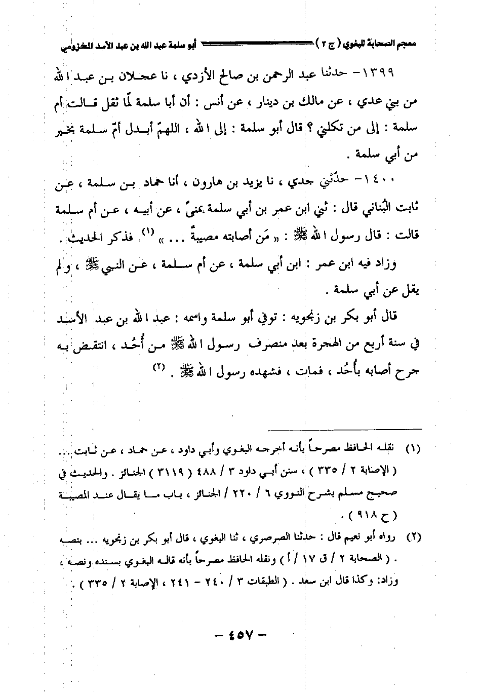 ١٣٩٩ - حدثنا عبد الرحمن بن صالح الأزدي نا عجلان بن عبد الله من بني عدي عن مالك بن دينار عن أنس: أن أبا سلمة لما ثقل قالت أم سلمة: إلى من تكلني؟ قال أبو سلمة: إلى الله، اللهم أبدل أم سلمة بخير من أبي سلمة.