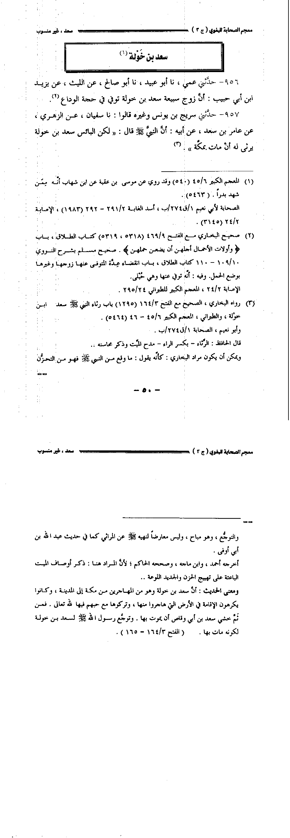 ٩٥٧ - حدثني سريج بن يونس وغيره قالوا: نا سفيان عن الزهري عن عامر بن سعد عن أبيه: أن النبي صلى الله عليه وسلم قال: " لكن البائس سعد بن خولة يرثى له أن مات بمكة.