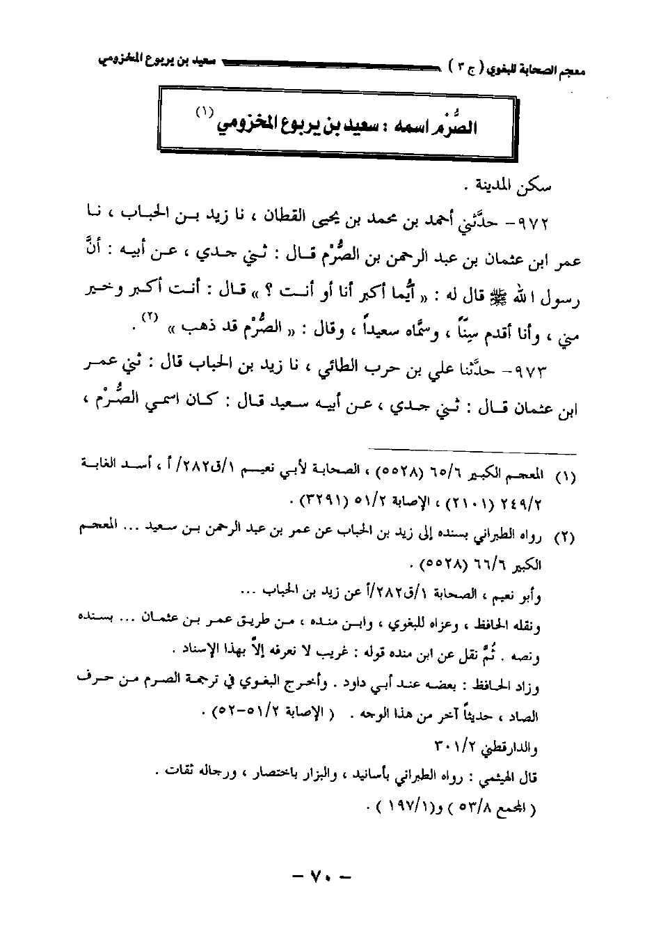 ٩٧٣ - حدثنا علي بن حرب الطائي نا زيد بن الحباب قال: حدثني عمر بن عثمان قال: حدثني جدي عن أبيه سعيد قال: كان اسمي الصرم