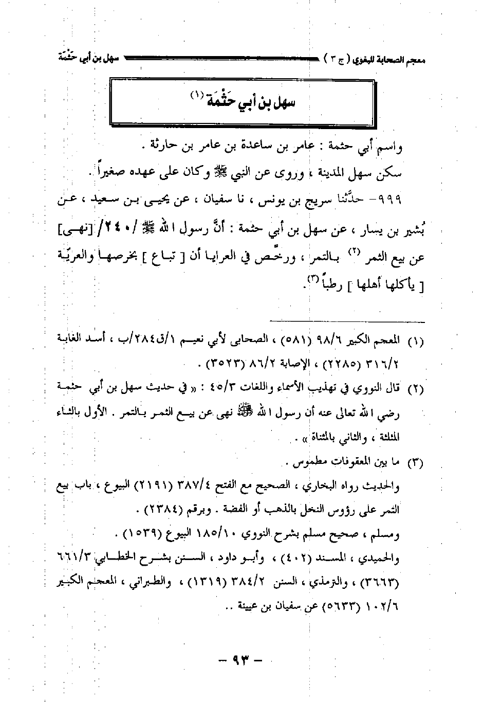 ٩٩٩ - حدثنا سريج بن يونس نا سفيان عن يحيى بن سعيد عن بشير بن يسار عن سهل بن أبي حثمة: أن رسول الله صلى الله عليه وسلم