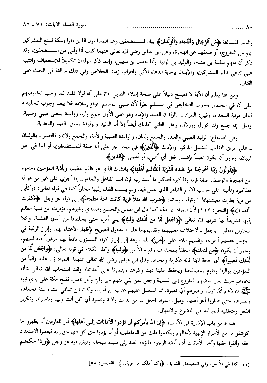(¬1) كذا في الأصل، وفي المصحف الشريف وَكَمْ أَهْلَكْنا مِنْ قَرْيَةٍ ... [القصص: 58] .