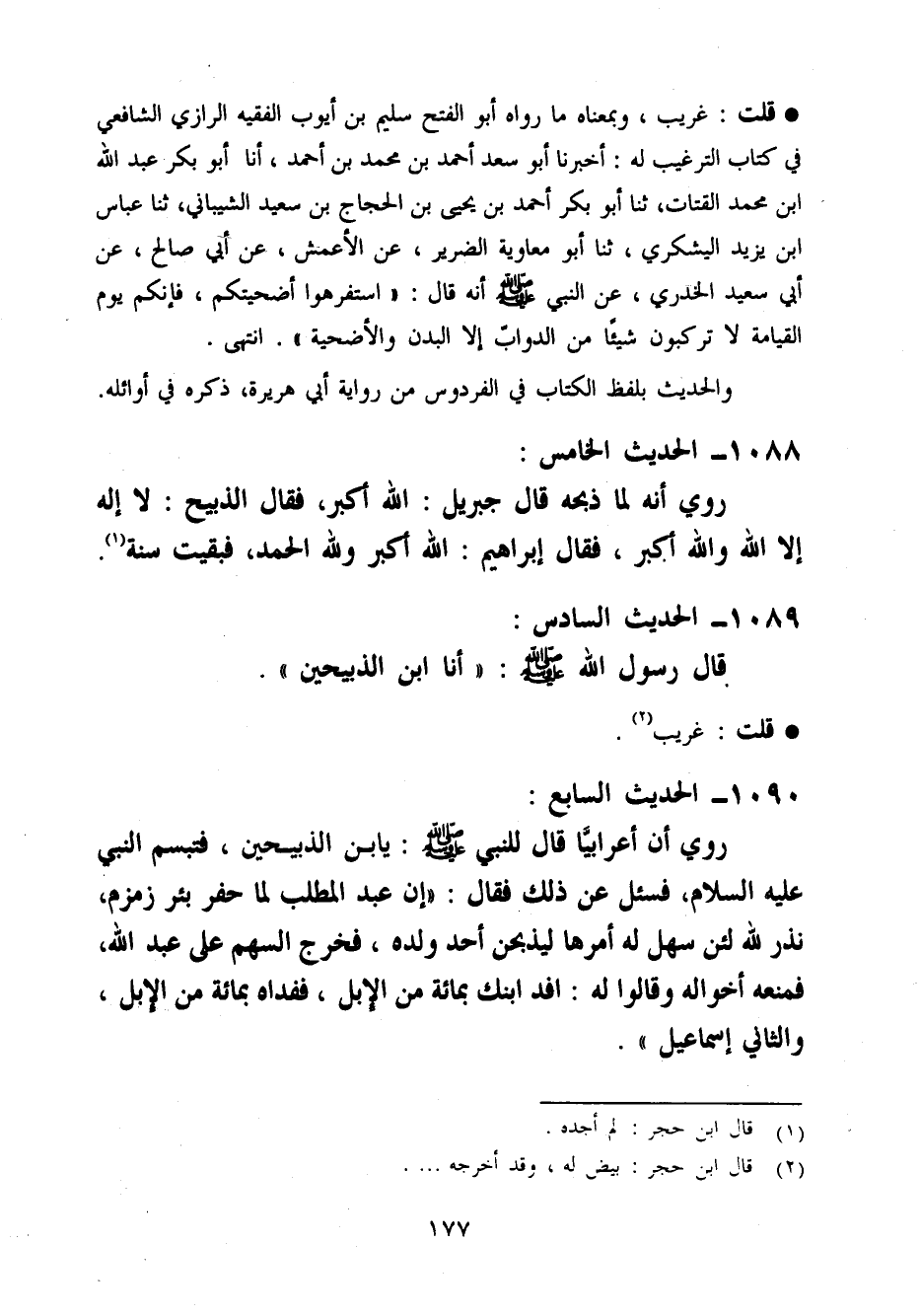 قَالَ رَسُول الله صَلَّى اللَّهُ عَلَيْهِ وَسَلَّم َ (أَنا ابْن الذبيحين)