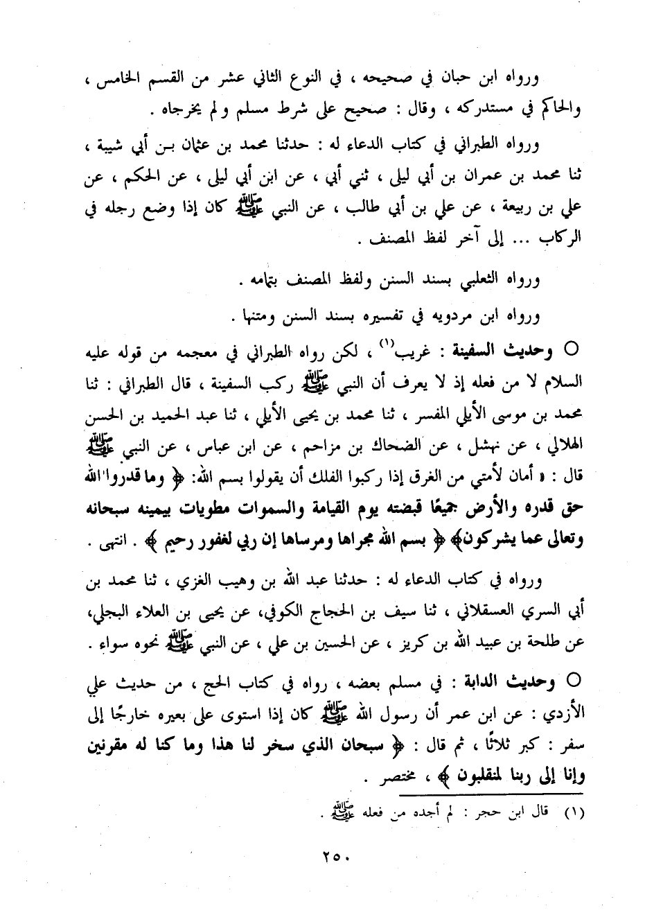 وَرَوَاهُ الطَّبَرَانِيّ فِي كتاب الدُّعَاء لَهُ حَدثنَا مُحَمَّد بن عُثْمَان بن أبي شيبَة ثَنَا مُحَمَّد بن عمرَان بن أبي لَيْلَى ثني أبي عَن ابْن أبي لَيْلَى عَن الحكم عَن عَلّي بن ربيعَة عَن عَلّي بن أبي طَالب عَن النَّبِي صَلَّى اللَّهُ عَلَيْهِ وَسَلَّم َ كَانَ إِذا وضع رجله فِي الركاب إِلَى آخر لفظ المُصَنّف