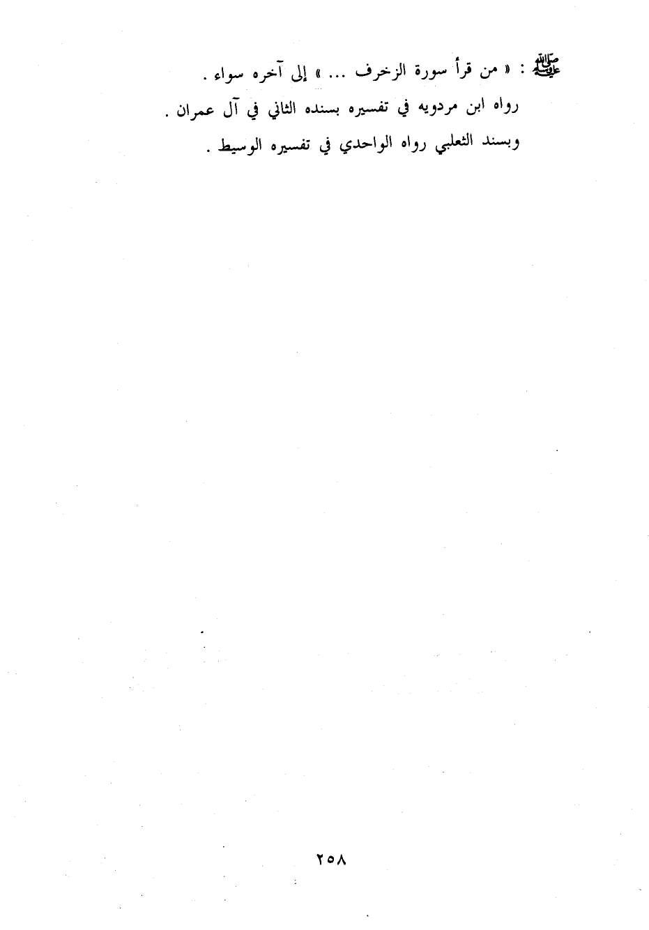 صَلَّى اللَّهُ عَلَيْهِ وَسَلَّم َ (من قَرَأَ سُورَة الزخرف) إِلَى آخِره سَوَاء