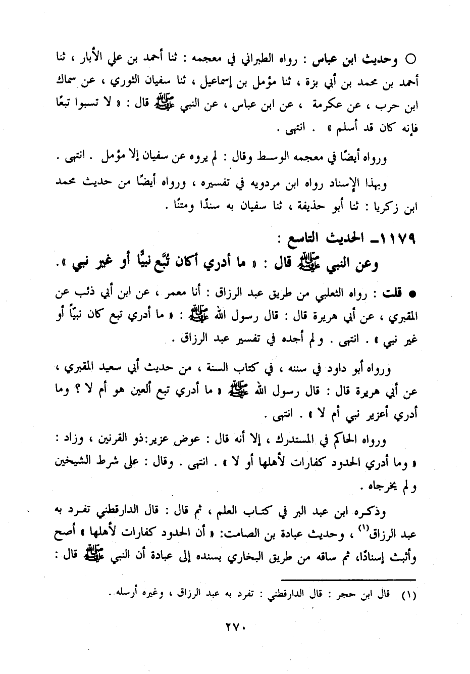 وَرَوَاهُ أَبُو دَاوُد فِي سنَنه فِي كتاب السّنة من حَدِيث أبي سعيد المَقْبُري عَن أبي هُرَيْرَة قَالَ قَالَ رَسُول الله صَلَّى اللَّهُ عَلَيْهِ وَسَلَّم َ (مَا أَدْرِي تبع أَلَعِين هُوَ أم لَا وَمَا أَدْرِي أَعُزَيْر نَبِي أم لَا) انْتَهَى