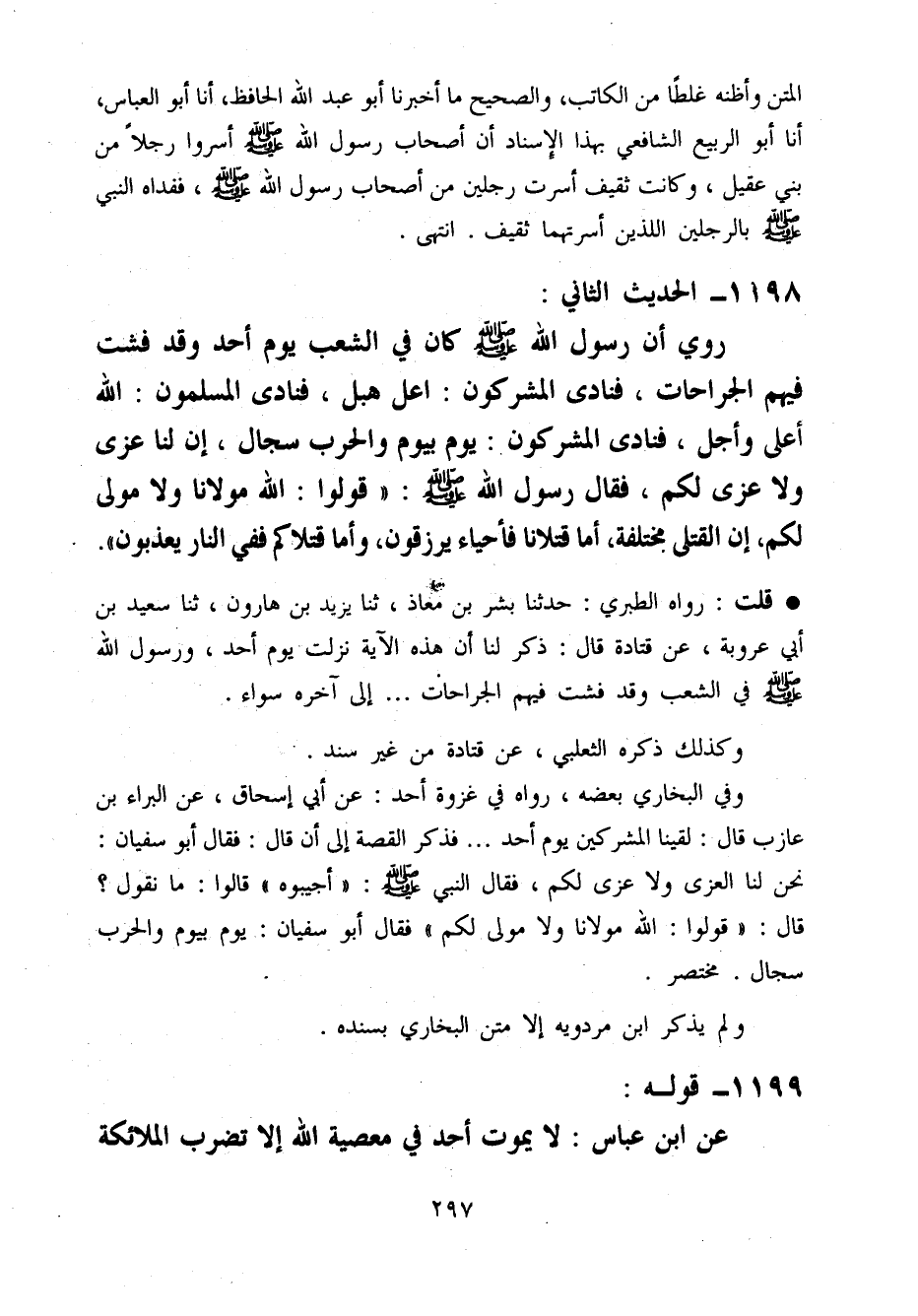 الْمَتْن وَأَظنهُ غَلطا من الْكَاتِب وَالصَّحِيح مَا أخبرنَا أَبُو عبد الله الْحَافِظ أَنا أَبُو الْعَبَّاس أَنا أَبُو الرّبيع الشَّافِعِي بِهَذَا الْإِسْنَاد أَن أَصْحَاب رَسُول الله صَلَّى اللَّهُ عَلَيْهِ وَسَلَّم َ أَسرُّوا رجلا من بني عقيل وَكَانَت ثَقِيف أسرت رجلَيْنِ من أَصْحَاب رَسُول الله صَلَّى اللَّهُ عَلَيْهِ وَسَلَّم َ فَفَدَاهُ النَّبِي صَلَّى اللَّهُ عَلَيْهِ وَسَلَّم َ بِالرجلَيْنِ اللَّذين أسرتهمَا ثَقِيف انْتَهَى