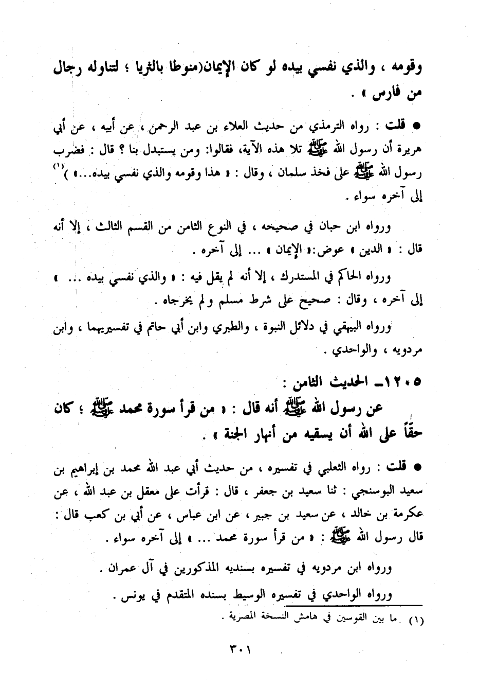 وَقَومه وَالَّذِي نَفسِي بِيَدِهِ لَو كَانَ الْإِيمَان مَنُوطًا بِالثُّرَيَّا لتنَاوله رجال من فَارس)