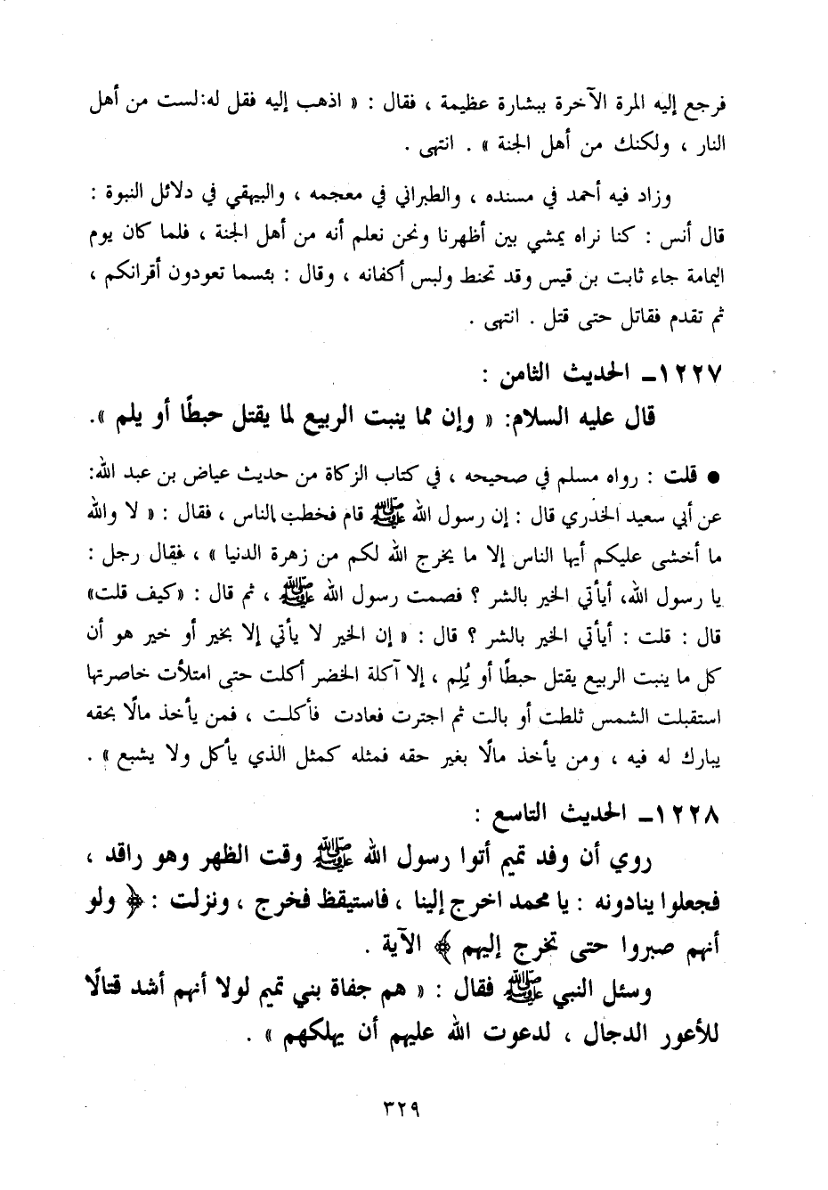 قلت رَوَاهُ مُسلم فِي صَحِيحه فِي كتاب الزَّكَاة من حَدِيث عِيَاض بن عبد الله عَن أبي سعيد الْخُدْرِيّ قَالَ إِن رَسُول الله صَلَّى اللَّهُ عَلَيْهِ وَسَلَّم َ قَامَ فَخَطب النَّاس فَقَالَ (لَا وَالله مَا أخْشَى عَلَيْكُم أَيهَا النَّاس إِلَّا مَا يخرج الله لكم من زهرَة الدُّنْيَا) فَقَالَ رجل يَا رَسُول الله أَيَأتِي الْخَيْر بِالشَّرِّ فَصمت رَسُول الله صَلَّى اللَّهُ عَلَيْهِ وَسَلَّم َ ثمَّ قَالَ (كَيفَ قلت) قَالَ قلت أَيَأتِي الْخَيْر بِالشَّرِّ قَالَ (إِن الْخَيْر لَا يَأْتِي إِلَّا بِخَير أَو خير هُوَ أَن كل مَا ينْبت الرّبيع يقتل حَبطًا أَو يلم إِلَّا آكِلَة الْخضر أكلت حَتَّى امْتَلَأت خَاصرتهَا اسْتقْبلت الشَّمْس ثَلَطَتْ أَو بَالَتْ ثمَّ اجْتَرَّتْ فَعَادَت فَأكلت فَمن يَأْخُذ مَالا بِحقِّهِ يُبَارك لَهُ فِيهِ وَمن يَأْخُذ مَالا بِغَيْر حَقه فَمثله كَمثل الَّذِي يَأْكُل وَلَا يشْبع)