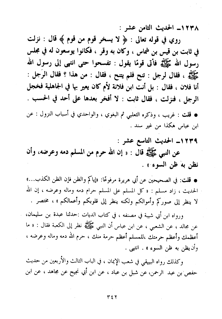 قلت فِي الصَّحِيحَيْنِ عَن أبي هُرَيْرَة مَرْفُوعا (إيَّاكُمْ وَالظَّن فَإِن الظَّن الْكَذِب) الحَدِيث زَاد مُسلم (كل الْمُسلم عَلَى الْمُسلم حرَام دَمه وَمَاله وَعرضه إِن الله لَا ينظر إِلَى صوركُمْ وَأَمْوَالكُمْ وَلكنه ينظر إِلَى قُلُوبكُمْ وَأَعْمَالكُمْ) مُخْتَصر