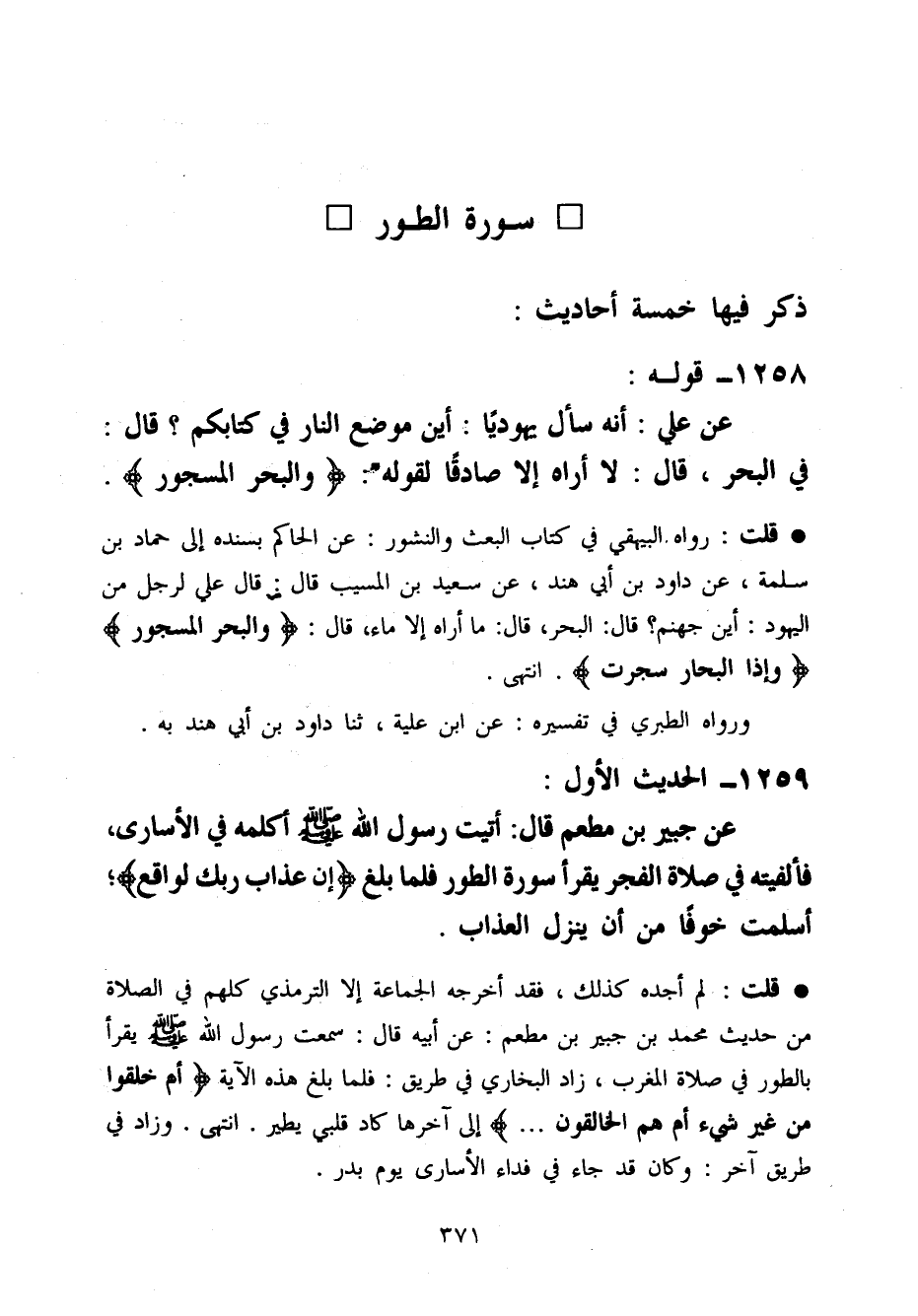 قلت رَوَاهُ الْبَيْهَقِيّ فِي كتاب الْبَعْث والنشور عَن الْحَاكِم بِسَنَدِهِ إِلَى حَمَّاد بن سَلمَة عَن دَاوُد بن أبي هِنْد عَن سعيد بن الْمسيب قَالَ قَالَ عَلّي لرجل من الْيَهُود أَيْن جَهَنَّم قَالَ الْبَحْر قَالَ مَا أرَاهُ إِلَّا مَاء قَالَ وَالْبَحْر الْمَسْجُور وَإِذا الْبحار سجرت انْتَهَى